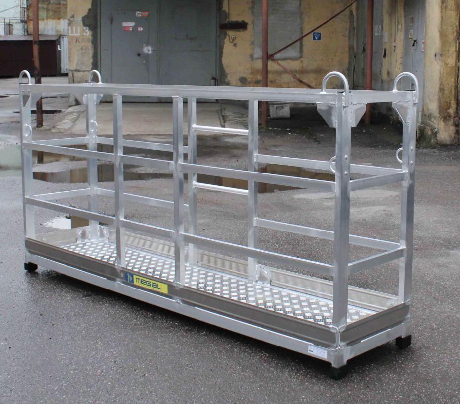 Площадка подвесная алюминиевая MEGAL ППА-2 служит для организации рабочего места на высоте при отделочных, монтажных и ремонтных работах. Оборудована петлями для строповки и крепления страховочного ремня. Удобные зацепы служат для подъема и перемещения площадки. Площадка позволяет с удобством расположиться двум рабочим с инструментом. Обладает высоким сроком службы за счет коррозионностойким свойствам алюминиевого сплава. Соответствует Федеральным нормам и правилам в области промышленной безопасности «Правила безопасности опасных производственных объектов, на которых используются подъемные сооружения». Приказ от 12 ноября 2013 года № 533 Федеральной службы по экологическому, технологическому и атомному надзору.