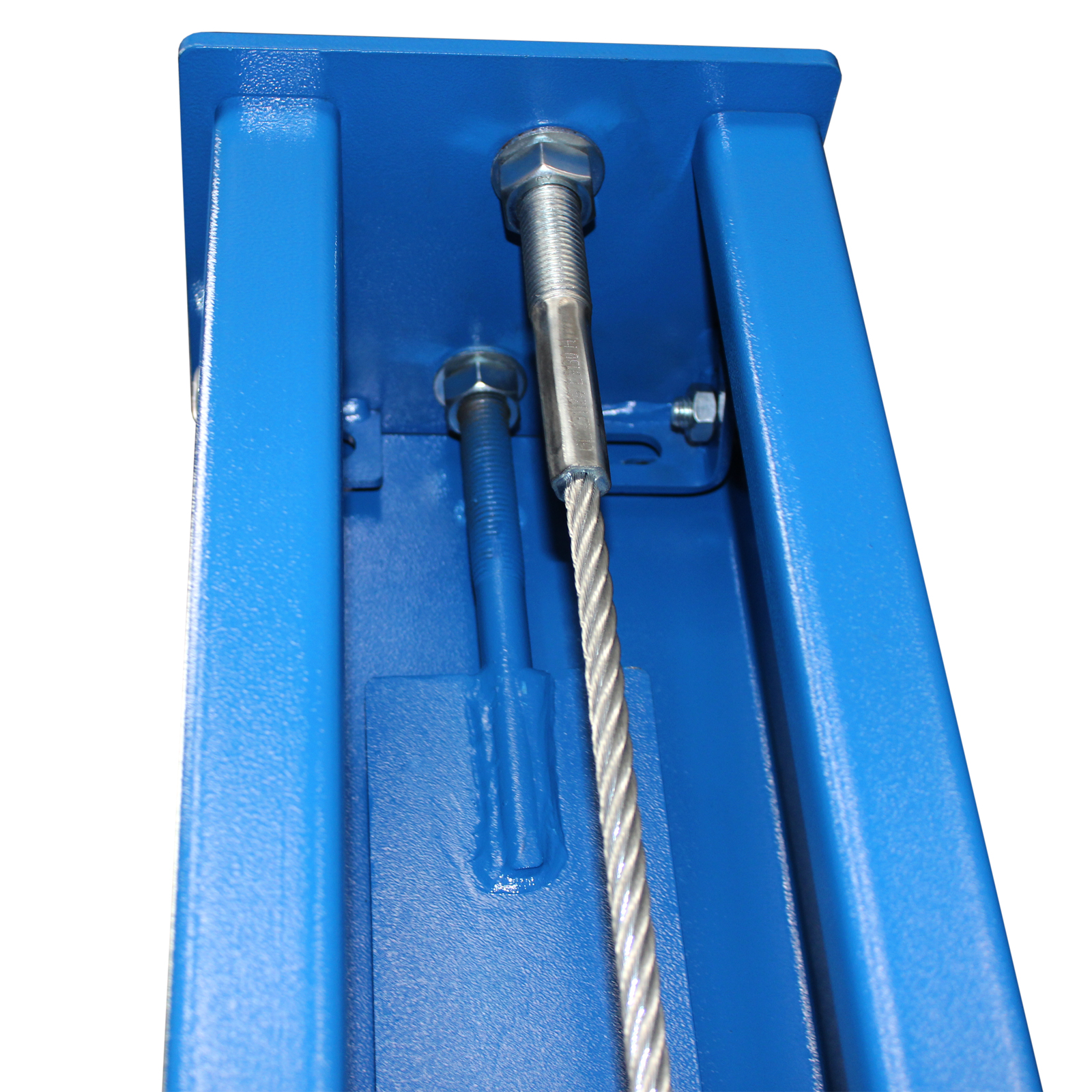 На всех стойках предусмотрен самоблокирующийся замок безопасности, исключающий риск аварийного опускания платформы. Разблокировка осуществляется нажатием на ручку рядом с силовой станцией.