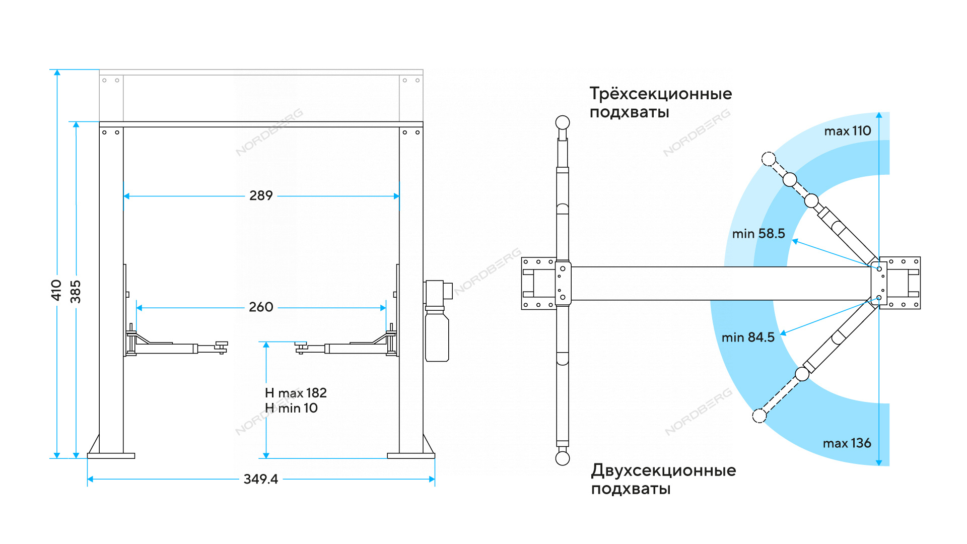 NORDBERG N4124H1-4G_220 — электрогидравлический двухстоечный подъёмник с верхней синхронизацией, грузоподъёмностью 4 тонны, 220 В.
