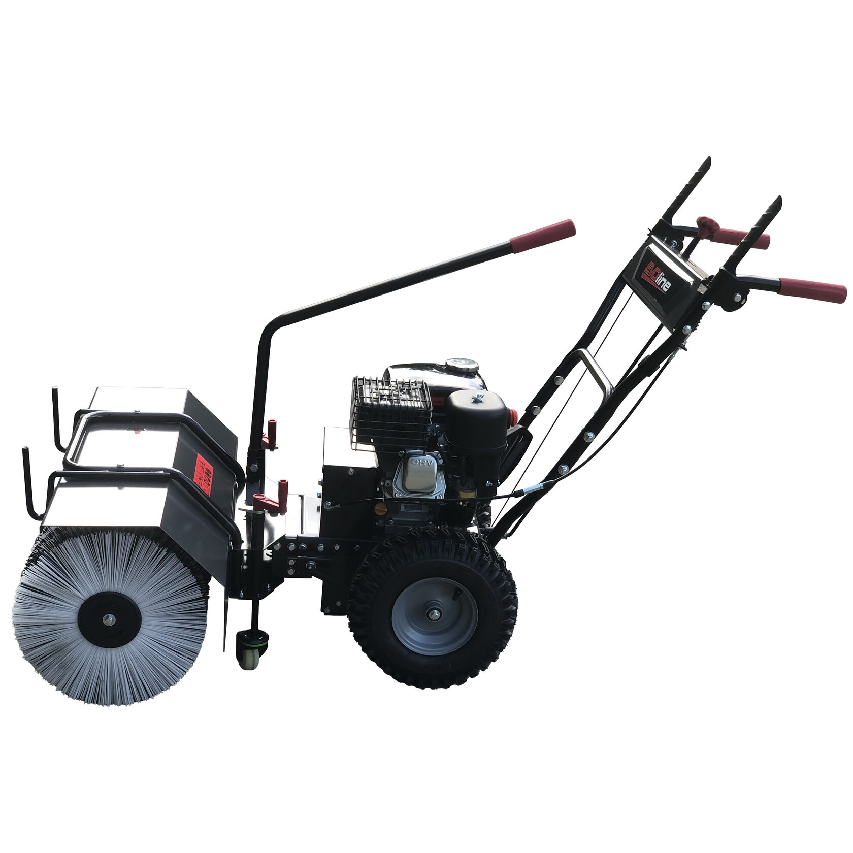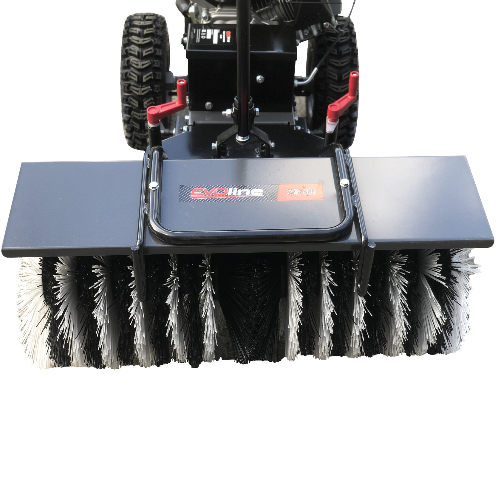 Максимальную производительность обеспечивает бензиновый двигатель Zongshen мощностью 6,5 л.с., который запускается с помощью ручного стартера. Щетки устанавливаются на подметальную машину EVOline SWG 800 очень быстро без применения дополнительных инструментов, рабочая ширина составляет 80 см. Крупные колеса с протекторным рисунком способствуют легкому продвижению машины по разным типам местности.