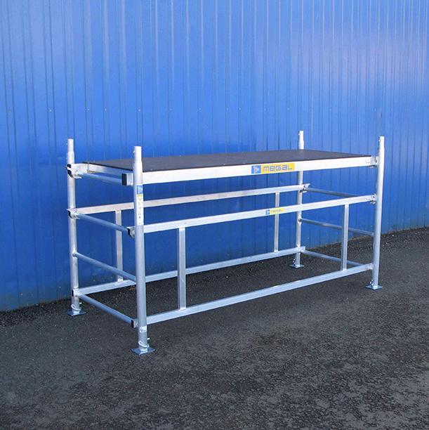 Подмости разборные алюминиевые MEGAL ПРА - 700 предназначены для проведения любых видов работ на небольших высотах. Настил площадки выполнен из влагостойкой ламинированной фанеры – 9 мм. Модульная конструкция подмостей позволяет варьировать высоту рабочей площадки с шагом 0.27 метра. Применяются в свободно стоящем положении на высоте до 3.0 метров от капитального устойчивого основания в помещениях, на открытых площадках и лестничных маршах при температуре от -40ºС до +50ºС. Сборка производится без использования инструментов. Подмости имеют легкий вес за счет использования алюминиевых сплавов.