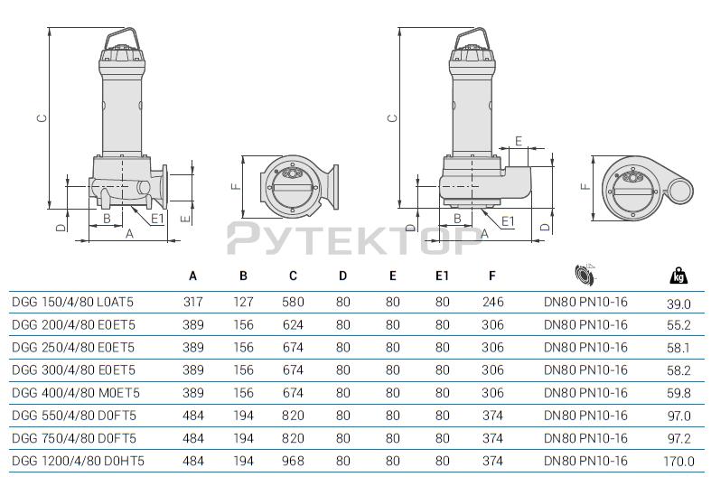 Насосные агрегаты типа DGG - погружные с глубоко посаженным рабочим колесом Vortex и горизонтальным подающим патрубком. Проточная часть насоса и рабочее колесо выполнены из чугуна. Два оппозитные механические уплотнения из карбида кремния в осматриваемой масляной камере. Электродвигатель сухого типа. Назначение: для загрязненной и канализационной воды с длинными волокнистыми и взвешенными частицами диаметром до 80 мм температурой не более 40° С; предназначен для использования в очистных сооружениях, канализационных системах, в промышленности и сельском хозяйстве.