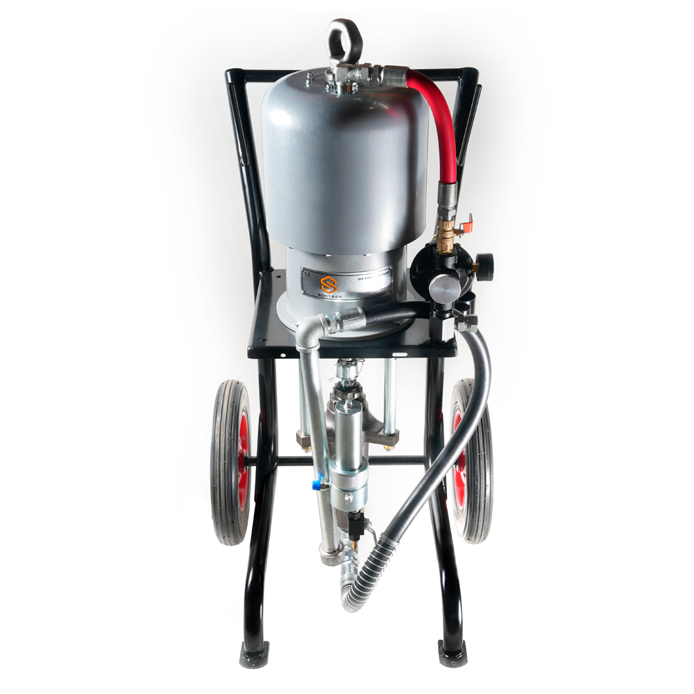 SCH254-X681 - поршневой окрасочный агрегат для безвоздушного распыления вязкой краски, работающий от сжатого воздуха из компрессора или от заводской пневматической сети. Окрасочный агрегат предназначен для промышленной покраски на заводах по производству металлических конструкций, вагонных заводах, на производствах, где требуется массовая покраска однотипных изделий одной и той же краской. Также аппарат применяется для антикоррозионной покраски, обработки металла цинконаполненными красками, покраски мостовых конструкций, многоэтажных домов, судов. Агрегат может распылять безвоздушным способом краски на водной основе и краски на растворителях. С красками средней вязкости он может работать на два-три малярных поста одновременно.