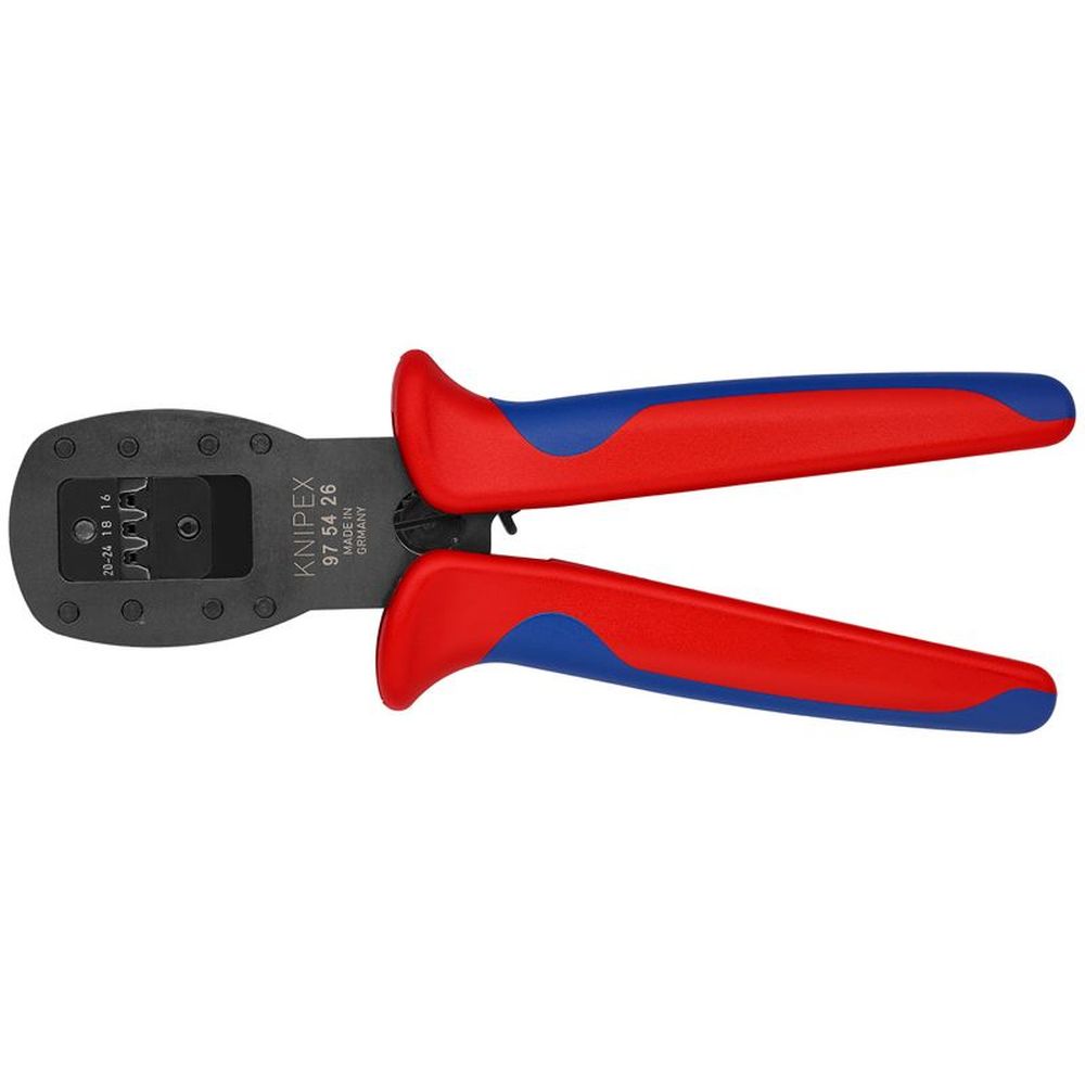 97 54 26 Пресс-клещи для миниатюрных штекеров параллельный ход опрессовочных плашек для обеспечения особо высоких требований при работе с малыми контактами. Неизменно высокое качество опрессовки благодаря механизму принудительной блокировки (с отпиранием). усилие опрессовки точно откалибровано изготовителем. высокая передача усилия благодаря рычажному механизму, для снижения усталости при работе. Инструмент для опрессовки других миниатюрных штекеров, например, HD 22; Modu IV; Micro Timer; MQS; ... по запросу. Mini-Fit® и Micro-Fit ™ - зарегистрированные торговые марки Molex® Inc.. - Применение: Для опрессовки штекеров серии Mini-Fit® марки Molex LLC - Количество гнезд: 3 - AWG: 16 / 18 / 20 — 24