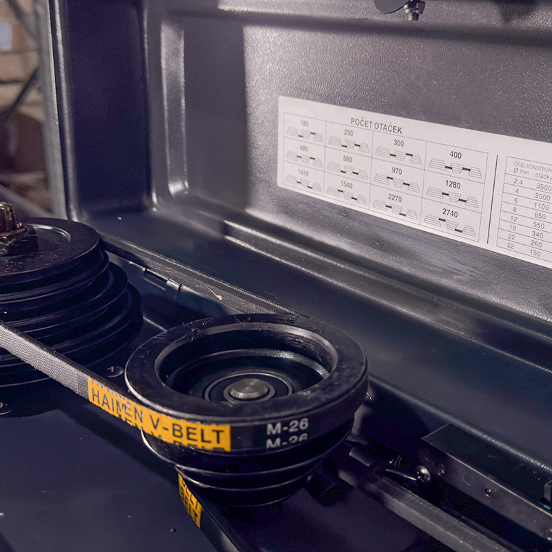 Станок обладает рядом особенностей. 12 скоростной ременный привод с промежуточным шкивом для снижения шума при работе. Мощный асинхронный двигатель выдерживающий высокие нагрузки. Реверс для нарезания резьбы или работы инструментом с левым направлением режущих кромок.