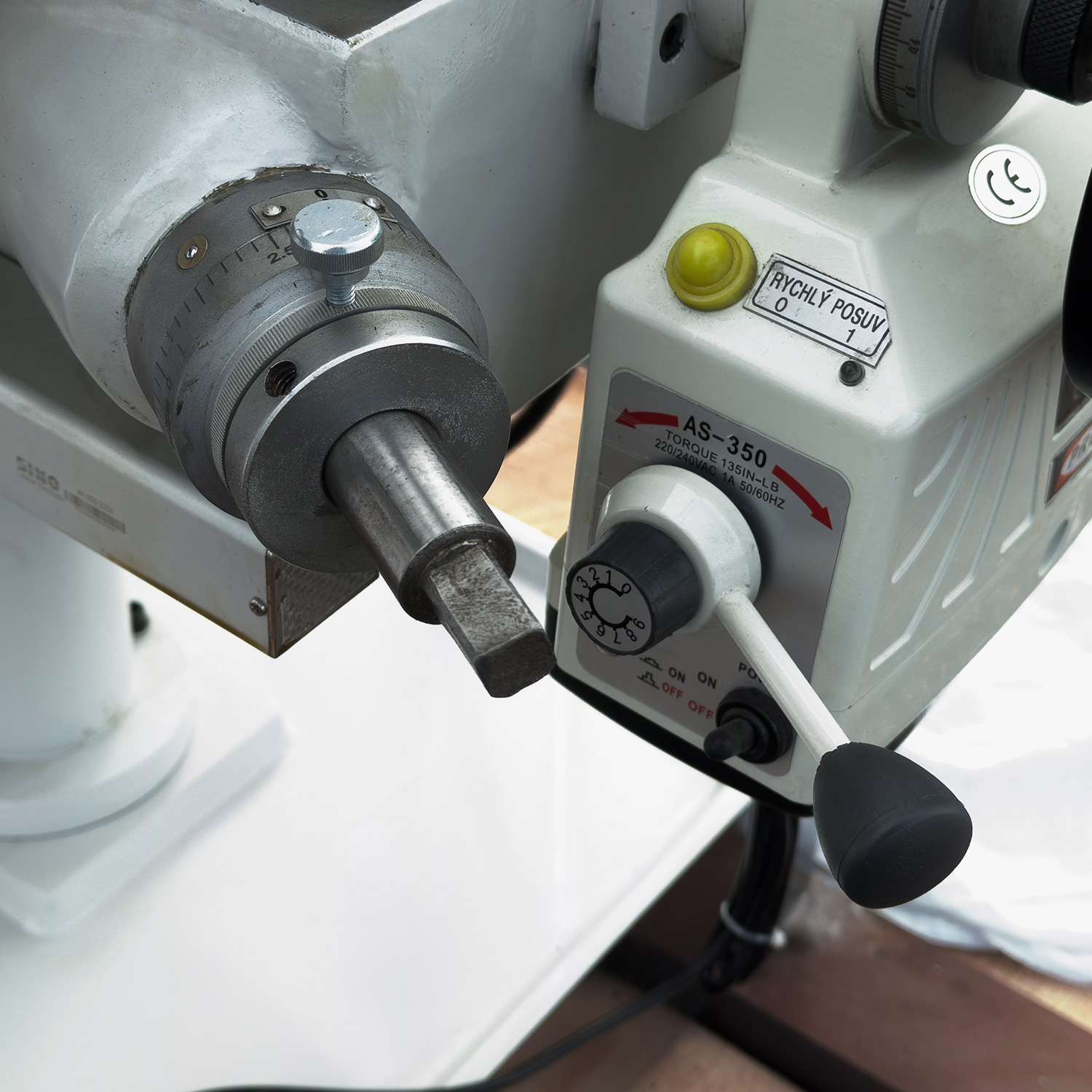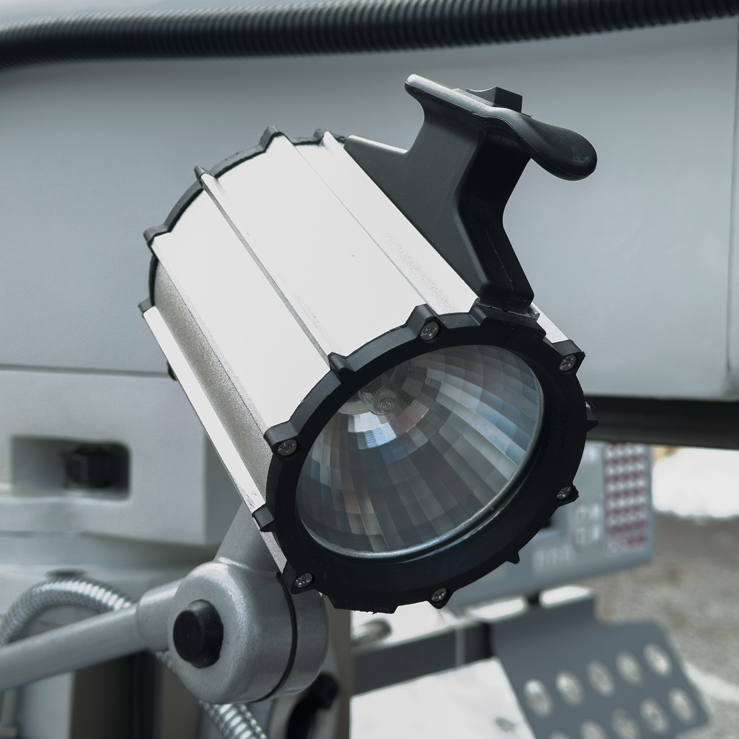 Особенности модели – ускоренное перемещение консоли, автоматические продольная и поперечная подачи стола, увеличивающие производительность, а также компактные размеры и простота конструкции. Станок оснащен мощным вертикальным шпинделем, способным работать на разных скоростях для выполнения различных операций. В шпиндель можно установить сверлильный или цанговый патрон и обрабатывать материалы различной твердости. Так же он может работать с торцевыми и концевыми фрезами разных размеров и способен нарезать резьбу. Фрезерную головку можно поворачивать вправо и влево на определенный угол. Расстояние от шпинделя до рабочего стола и размеры самого стола позволяют комфортно работать с различными деталями. Рабочий стол оснащен Т-образными пазами для крепления дополнительных приспособлений. Установленное двухосевое УЦИ позволяет повысить точность обработки деталей и снижает вероятность ошибок оператора.