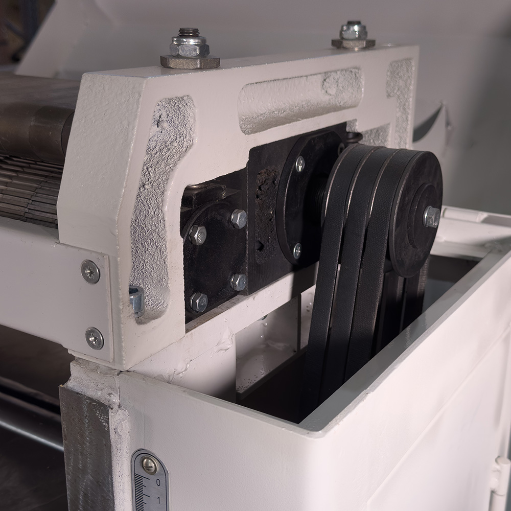 Модель отличается жёсткой, устойчивой конструкцией. Рабочий стол изготовлен из серого чугуна, имеет ручной механизм подъёма – опускания и две опорные стойки. Ременный привод с мощным асинхронным двигателем рассчитан на высокую нагрузку. Четырех ножевой строгальный вал обеспечивает хорошую чистоту поверхности при обработке. Особо стоит отметить надёжную цепную автоматическую подачу заготовки с настройкой прижимных валов для разных пород древесины. Так же конструкция предусматривает подключение промышленного стружкопылесоса.