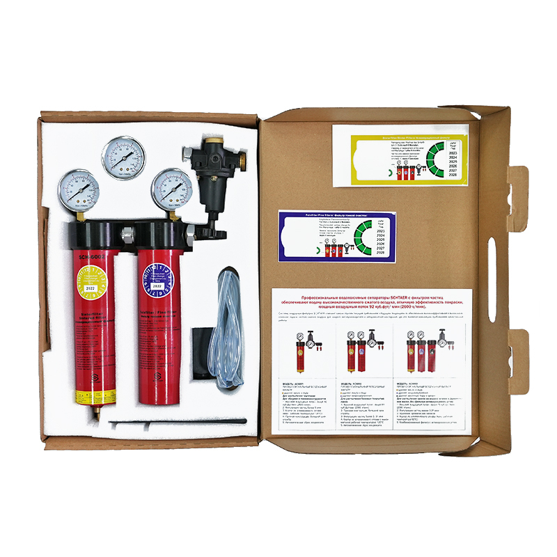 Состоит: 2 фильтрующих элемента, 2 манометра, регулятор давления.