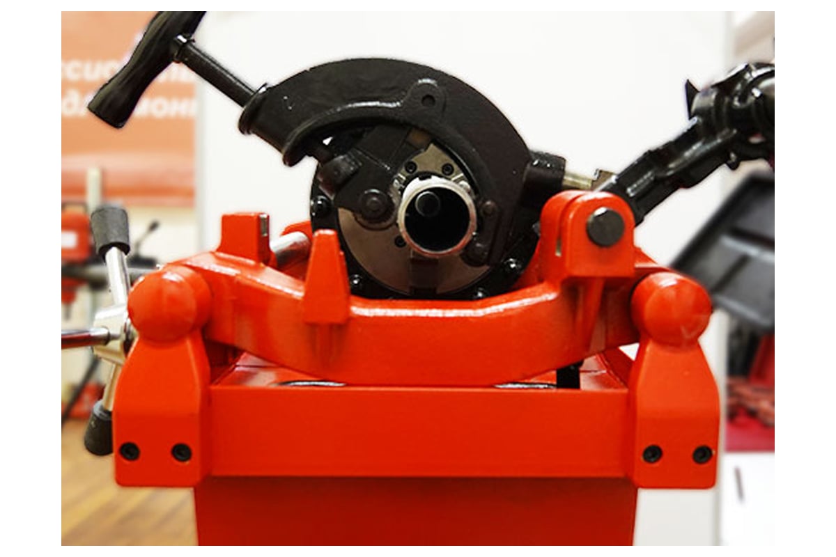 Резьбонарезной станок подходит для эксплуатации в интенсивном режиме, что позволяет использовать его в серийном производстве. Самоцентрирующийся труборез и центрирующийся зажимной патрон существенно облегчают работу оператора. Модель питается от электросети с напряжением 220 В. Оборудование служит для нанесения точной и качественной резьбы на металлические заготовки. Предназначен для нарезания трубной конической резьбы BSPT 1/2"- 2" (возможно доукомплектовать метрической резьбонарезной головкой - артикул 2.20055).