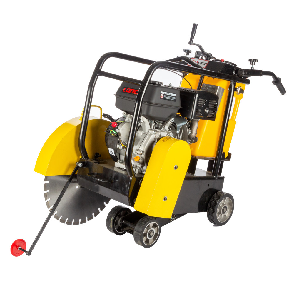 Швонарезчик REDVERG RD-FS500L – это оборудование для профессионального использования, применяется в дорожном строительстве, производит резку алмазным диском горизонтальных асфальтовых и бетонных поверхностей. Для точности выполняемых операций есть указатель направления реза. Имеет систему подачи воды для снижения пыли в рабочей зоне, которая также препятствует износу диска. Двигатель LONCIN 390F. Мощность агрегата составляет 8300 Вт или 13 л.с. Объём двигателя 380 кубических сантиметров. Объём бензобака 13 литров. Максимальное число оборотов холостого хода 2950 об/мин. Диаметр диска составляет 500 мм. Максимальная глубина пропила под углом 90 градусов 150 мм. Вес оборудования 95 кг.