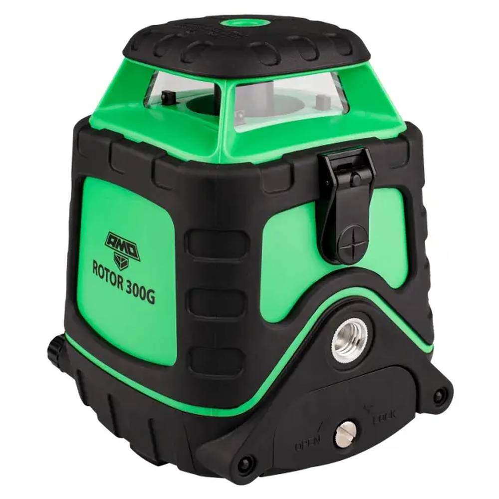 Ротационный лазерный нивелир AMO ROTOR 300G проецирует вертикальную и горизонтальную плоскости с разверткой на 360°. Прибор позволяет с высокой точностью проводить выравнивание дорожного полотна, выполнять разметку во время таких строительных работ, как заливка полов, возведение стен и фундаментов. Дальность работы составляет 600 м. Нивелир имеет яркий лазер зеленого цвета, который отлично видно при работе как внутри, так и снаружи помещения. Лазерный уровень работает от четырех щелочных батареек или перезаряжаемого аккумулятора.