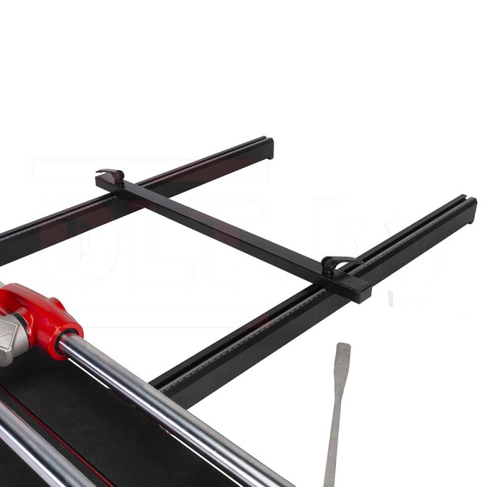 Диаметр цельностальных, хромированных и полированных направляющих плиткореза составляет 25мм, что гарантирует их устойчивость к изгибанию. Рабочий стол станка изготовлен из экстрадированного алюминия и представляет собой закрытую конструкцию, что придаёт плиткорезу прочность и легкость. Ручной плиткорез RUBI TIGER оснащён раздвижными алюминиевыми опорами для обеспечения устойчивости керамики большого формата. Также оснащен боковым упором для серийной резки и фиксации заготовок под углом 45º. Имеет линейку, которая позволяет выставить плитку без дополнительной разметки, регулируя ровность реза. Рукоятка рычага изготавливается из биоматериала для большей эргономичности и удобства.