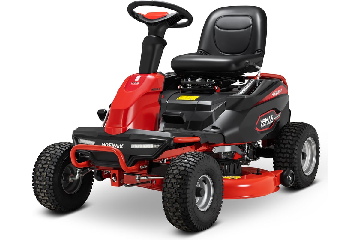 Садовый райдер аккумуляторный МОБИЛ К XPA110 ПРЕМИУМ MBK0032691 представляет собой высокотехнологичную самоходную машину, сочетающую в себе функции райдера и газонокосилки. Кошение травы производится высокопроизводительной декой шириной 110 см, что позволяет рекомендовать использование машины на участках от 30 до 100 соток (0,3 - 1 Га) . Входящая в комплект поставки задняя сцепка дает возможность работы машины с различным прицепным оборудованием: прицепами, газонными катками, разбрасывателями семян, аэраторами и др., что наделяет ее функциями трактора. Райдер оснащен электрическим приводом и работает от интегрированной свинцово-кислотной батареи напряжением 48 Вольт (4х12 Вольт) и емкостью 75 Ач. Запас энергии батареи, характеризующий максимальный объем работы, выполняемой на одном заряде - 3600 Ватт*ч. Аккумуляторная батарея питает 3 высокоэффективных бесщеточных двигателя. Один двигатель находится в заднем мосту и обеспечивает движение вперед со скоростью до 12,8 км/ч (при кошении - до 8 км/ч) и движение назад со скоростью до 3,5 км/ч. Еще 2 двигателя установлены на деке и приводят в действие 2 ножа. На одном заряде аккумуляторной батареи райдер способен скосить до 100 соток (10000 кв. м.).