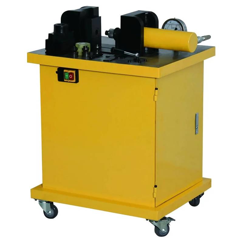 Шинообрабатывающий станок СШГ-120K используют для резки, гибки и перфорации медных и алюминиевых шин толщиной до 10 мм и шириной до 120 мм с помощью встроенного гидравлического насоса.