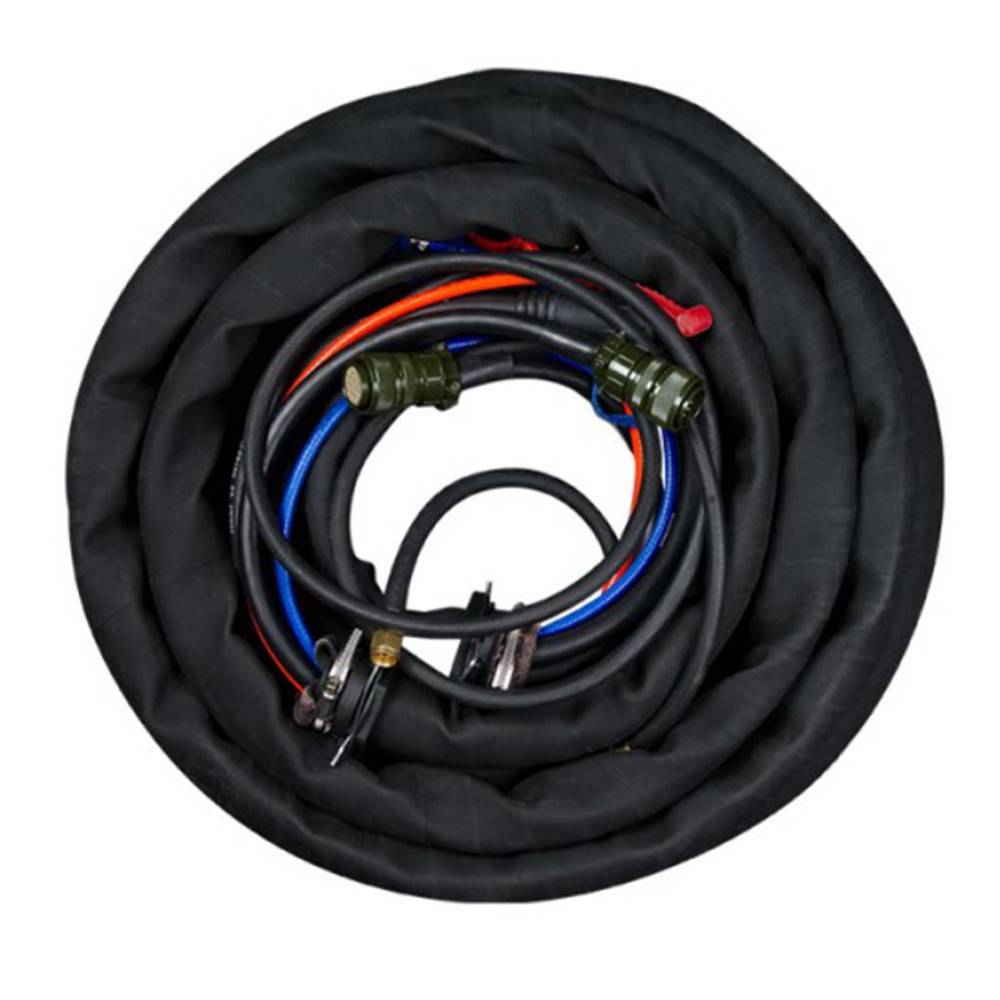 Шланг-пакет Fubag 641378 5 метров, 95 мм2 ,14 pol, с жидкостным охлаждением предназначен для подключения сварочного аппарата к источнику питания и подачи охлаждающей жидкости. Это специальное техническое решение обеспечивает непрерывную работу оборудования при максимальном токе сварки и повышенных тепловых нагрузках. Многослойная изоляция обеспечивает защиту от коротких замыканий и внешних воздействий. Гибкость и малый радиус изгиба позволяют комфортно устанавливать кабель даже в тесных помещениях. Структура провода допускает пропуск большей мощности тока без увеличения сопротивления. Коррозионноустойчивые контакты разъема исключают окисление и улучшают контакт с источником питания.