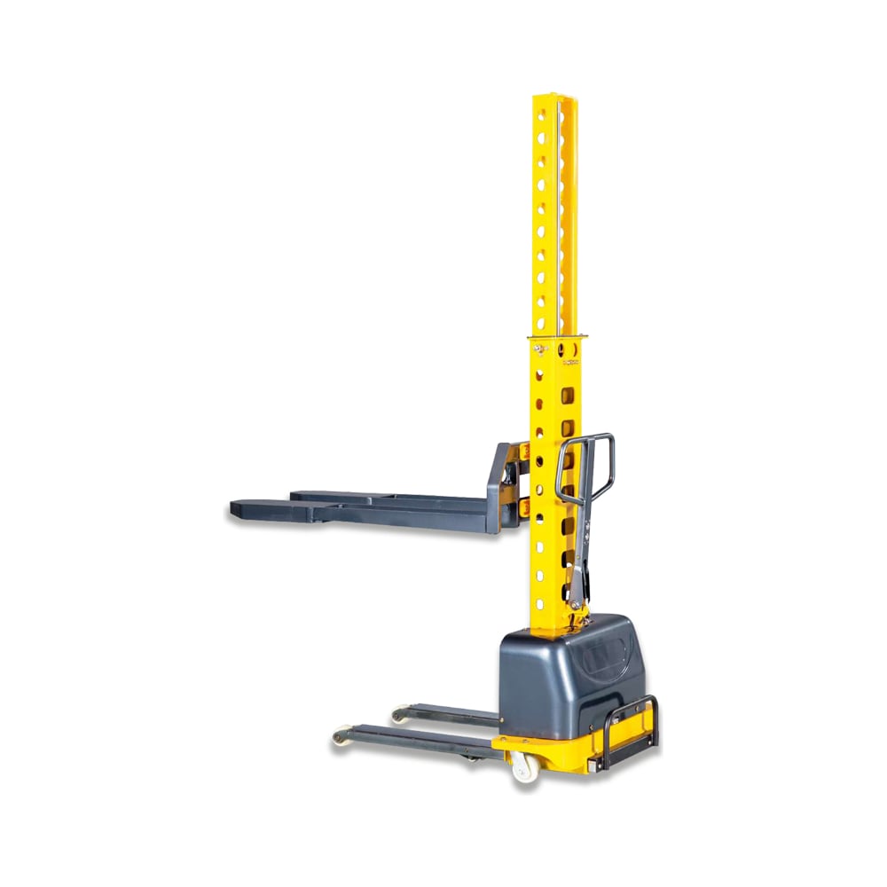 Самоподъемный штабелер с электроподъемом TOR 0,5 т 1,3 м Vango500 1008785 представляет собой надежное оборудование для работы на складах. Жесткие вилы и мощная подъемная система обеспечивают комфортный подъем заявленных масс. Опорная колонна имеет особую форму, которая позволяет поднимать груз без перекашивания платформ. Можно маневрировать в узких проходах.