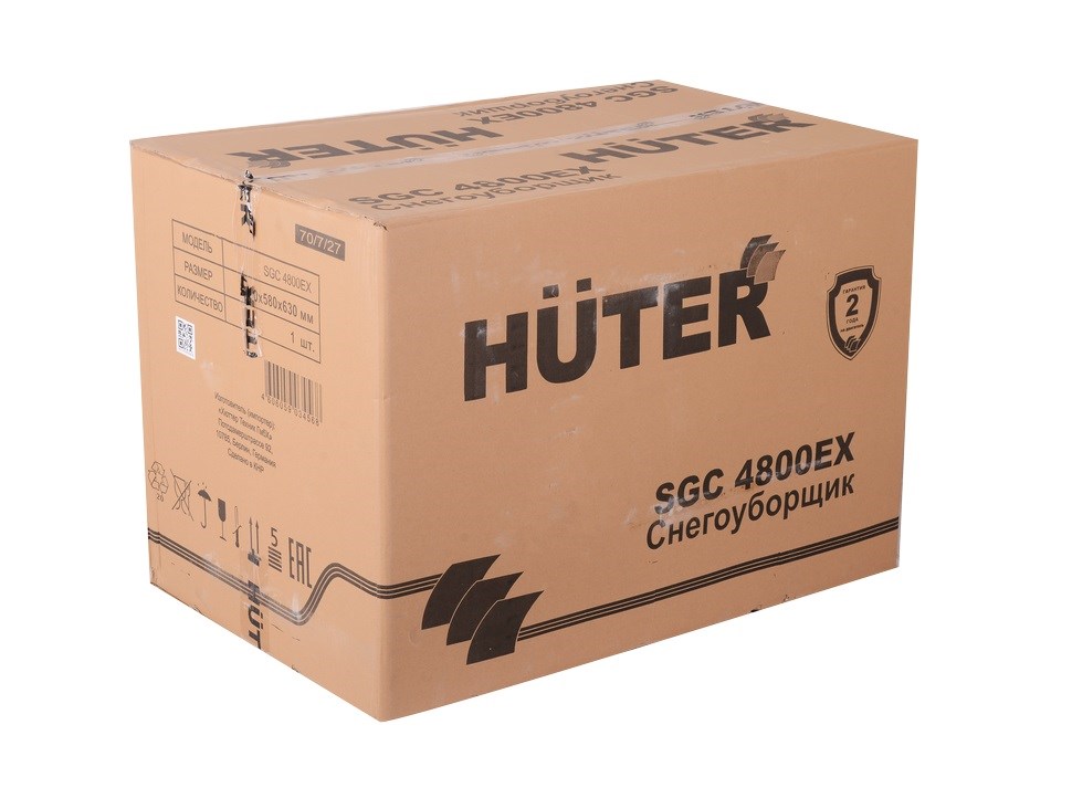 Снегоуборщик Huter SGC 4800EX обеспечивает мощность и производительность. Оснащенный двигателем мощностью 7 л.с, он позволяет убирать тяжелый мокрый снег с большой дальностью выброса. Он оснащен высокоэффективным четырехтактным двигателем. Преимущество этой машины — наличие электрического и ручного стартера. Для быстрого запуска можно использовать стартер от электросети 220 В. Если нет возможности подключиться к розетке, снегоуборщик все равно пригоден к работе с ручным запуском двигателя. Еще одна отличительная особенность модели — ковш высотой 54 см. Он позволяет убирать высокие пласты снега и эффективно очищать территорию за малое количество проходов. Ширина ковша — 68 см. Для удобства уборки в сумерках или условиях плохой освещенности доступна фара. Элементы управления удобно расположены около рукояток, что упрощает работу. Зимние шины обеспечивают хорошее сцепление на снегу и льду. Количество скоростей для движения вперед — шесть, назад — две.