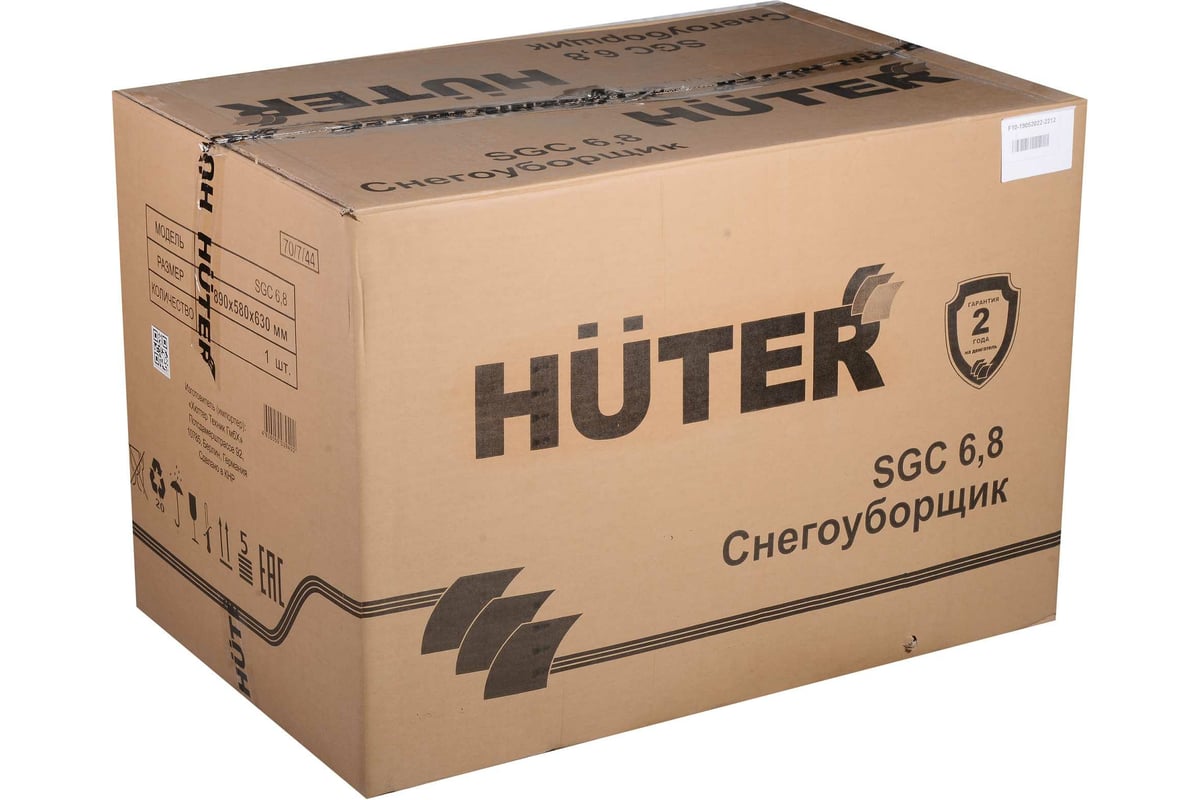 Снегоуборщик Huter SGC 6,8 предназначен для уборки от снега небольших дачных и придомовых участков, подъездных дорожек. Благодаря небольшим габаритам хорошо очищает труднодоступные места. Снегоуборщик оснащён бензиновым двигателем мощностью 7 л.с. и пятью скоростями вперёд и двумя назад. Ширина захвата при одном проходе составляет 56 см. А высота захвата составляет 54 см. Высота подъема ковша регулируется металлическими башмаками. Рабочим органом является шнек спиралевидной формы из прочной углеродистой стали, поэтому снегоуборщик способен справляться со слежавшимся снегом, настом и даже кусками льда. Загребаемый снег выбрасывается через специальный жёлоб на 15 метров в сторону. Дальность выброса регулируется посредством наклона отражателя. Поворачивать желоб можно на 190° прямо в процессе работы.