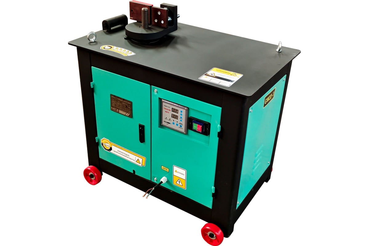 Данный станок предназначен для гибки арматуры класса А3 от 6 до 22 миллиметров. Принцип работы станка состоит из передаточного механизма, рамы и рабочей платформы. Привод передаточного механизма осуществляется от электрического двигателя посредством передачи вращения через шкивы клиновым ремнем. Благодаря удобной конструкции обслуживание станка не требует особых усилий. Станок имеет дверцу для удобного доступа ко всем механизмам.