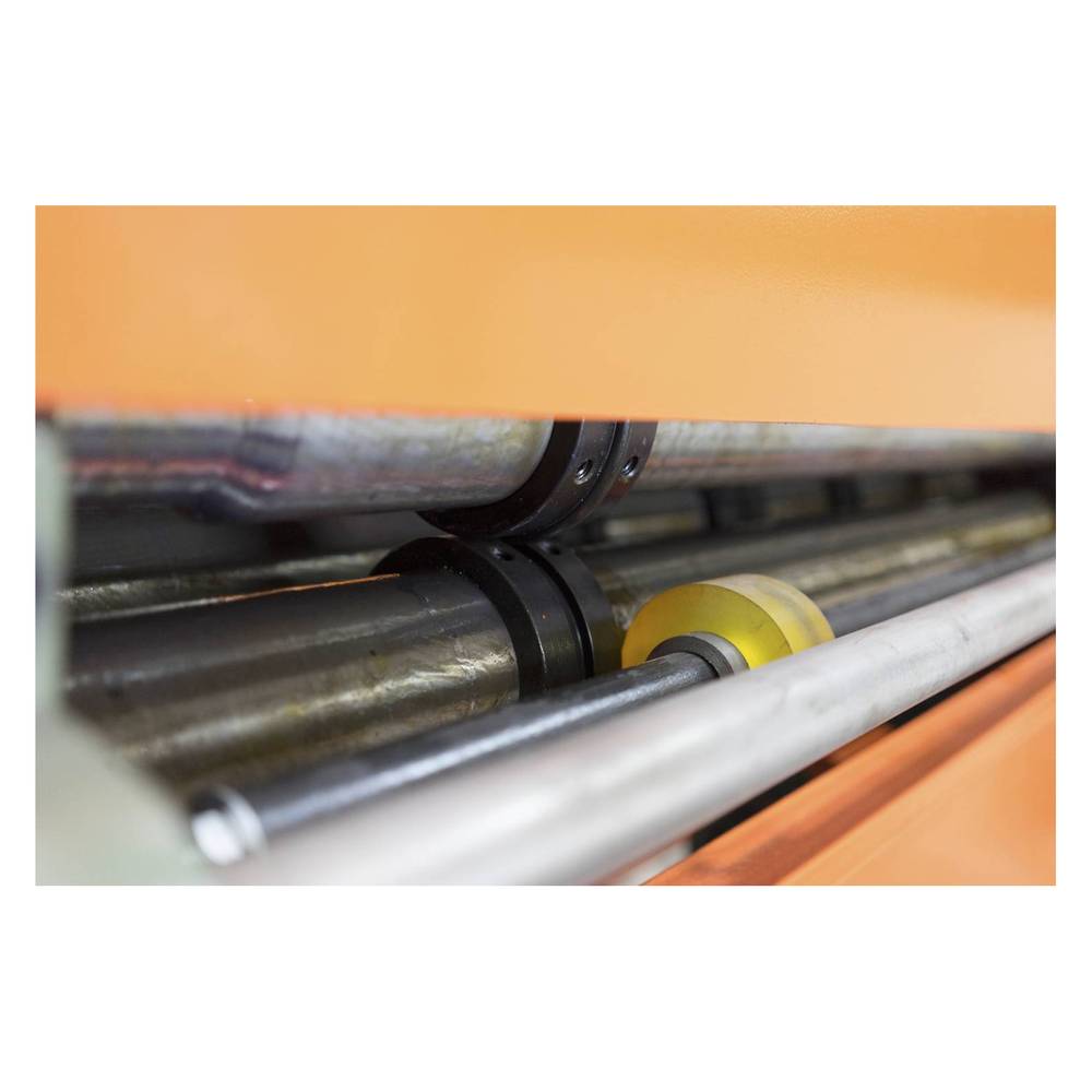 Станок для накатки ребер жесткости является пятирядным формирующим станком, предназначенным для нанесения параллельных рёбер жёсткости серии G за одну операцию. Станок имеет 5 пар роликов. Протягивающие валы с установленными профилировочными роликами приводятся в движение электромотором.
