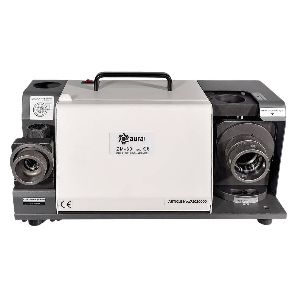 Cтанок для заточки спиральных сверл AURA ZM-30 отличается простотой в эксплуатации, точностью и быстротой в использовании. Станок не требует высокой квалификации от пользователя. Станок в базовой комплектации оснащен точными алмазным шлифовальными дисками CBN для заточки сверл из быстрорежущей стали. Диски SDC для заточки твердосплавных сверл предлагаются как опция. Расчетная точность заточки 0,02 мм. Экономичный и мощный электрический двигатель, обеспечивает стабильную частоту вращения заточного диска. Двигатель рассчитан на длительный срок службы. Станок AURA ZM-30 позволяет произвести качественную заточку спирального сверла диаметром от 3 до 30 мм с углом при вершине 90, 118, 130, 135 или 140° по передней режущей кромке с затыловкой. Для твердых сталей оптимальным углом заточки будет 135-140°, для глубокого сверления — 130°, для мягких материалов (дерево, пластик, латунь, алюминий) — 90-118°.