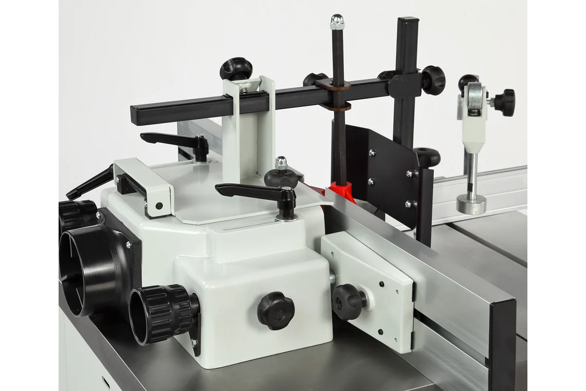 Станок оснащен чугунным рабочим столом и кареткой с подвижным столом. Подвижный стол выполнен из алюминия, в нем имеется стандартный паз под установку углового упора с эксцентриковым зажимом для фиксации заготовок. Корпус изделия закрытый, изготовлен из листовой стали. В комплект поставки входит шпиндель 30 мм и зажимной патрон с тремя цангами (8, 12 и 12,7 мм) и наборные кольца разной высоты. Принадлежности для шлифования и фрезерования являются дополнительными аксессуарами, в комплект поставки не входят. Питание станка осуществляется от сети переменного тока напряжением 400 В ±10 и частотой 50 Гц ±5%, с защитным (заземляющим) проводом по ГОСТ 12.1.030-81*. Качество источника электрической энергии по ГОСТ 32144-2013.