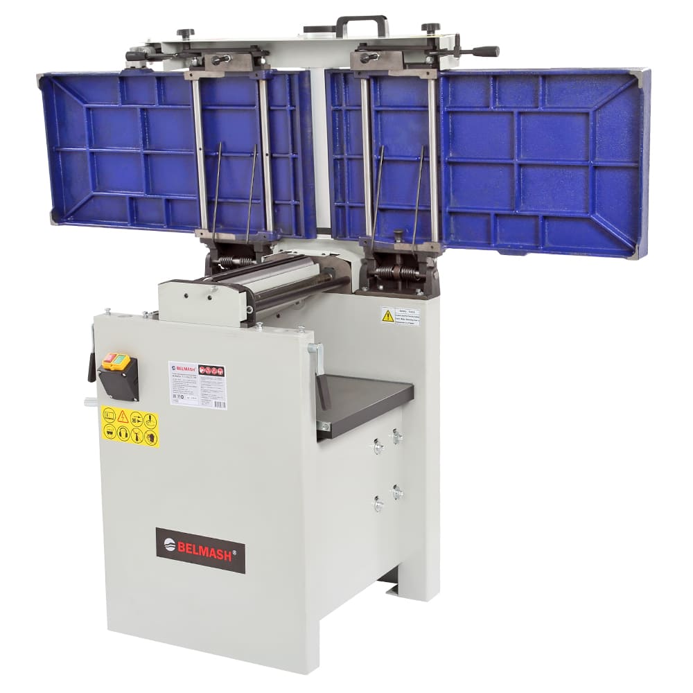 Станок предназначен для фугования и рейсмусования, данное оборудование идеально подходит и совмещает в себе все операции для калибровки доски. ширина обработки составляет 410 мм - это значение достаточно велико по меркам профессиональных рейсмусовых станков, а по меркам фуговальных - и вовсе характерно для оборудования более высокого индустриального класса. Мощность трехфазного электродвигателя составляет 4000 Вт. Такое сочетание характеристик делает модель привлекательной не только с точки зрения экономии рабочего пространства, но и возможности выполнения серьезных задач. Вилка (тип 515) для подключения к сети 400 (380) Вольт расположена на корпусе станка. Конструкция станка – одна из самых удачных на рынке: широкое использование массивных чугунных деталей и большой вес гарантирует точную работу без вибраций. При рейсмусовании верхний модуль целиком поднимается и не мешает ни работе, ни стружкоудалению. Отдельного внимания заслуживает удобный эксцентриковый механизм регулировки положения столов, причем как подающего, так и принимающего. Входящий в базовое оснащение вал helical снабжен твердосплавными режущими вставками. Он надежнее и проще в эксплуатации (не нужно никаких регулировок). Частота вращения в 5500 об/мин. также способствует чистому резу. Для строгания по торцу или под углом от 90 до 45 градусов станок оборудован параллельным упором, который выполнен в жесткого алюминиевого профиля. При выборе между двумя специализированными или одним комбинированным станком нужно учитывать, что эта модель точна, удобна и производительна, как специализированные, но потребует несколько более частого обслуживания рейсмусовой части в случае интенсивной эксплуатации.