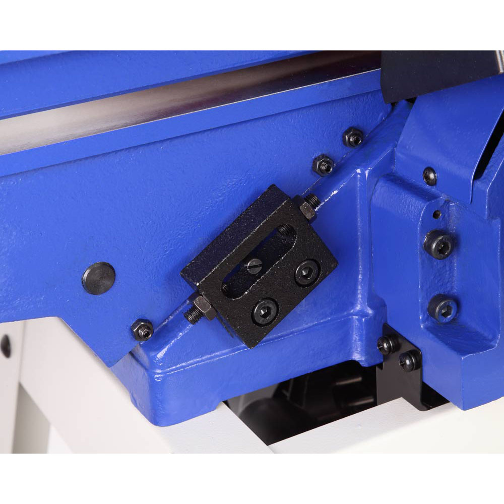 Станок предназначен для обработки древесины с целью придания ей необходимых размеров и форм. На станке можно выполнять фугование поверхностей. Параллельный упор позволяет осуществлять строгание под углом 90 и 45 градусов во внешнюю и внутреннюю стороны. Для отвода отходов обработки установлен аспирационный патрубок диаметром 100 мм, к которому можно подключить вытяжную установку. Рабочий стол и параллельный упор выполнены из чугуна. Для безопасной работы станок оборудован литым защитным кожухом ножевого вала. Также в комплекте есть специальные упоры для подачи заготовки. Устройство выполнено на сборной станине.