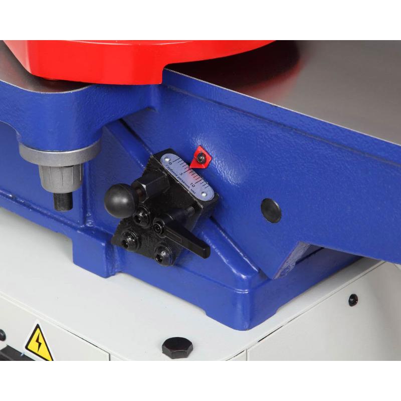 Основными деталями станка являются ножевой вал, столы приема и подачи и параллельный упор. Типичный рез на фуговальном станке выполняется путем прочного удержания заготовки на столе приема и с упором на параллельную направляющую и движении заготовки вдоль ножевого вала. По мере движения заготовки по ножевом валу, ножи выполняют несколько тонких резов, «сбривая» поверхность заготовки. После прохода по ножевом валу заготовка попадает на стол приема, который так же, как и параллельный упор продолжает направлять заготовку в плоскости до тех пор, пока она вся не пройдет через ножевой вал. Большинство резов повторяют несколько раз, чтобы достичь желаемого результата. Максимальная ширина обрабатываемой заготовки составляет 152 мм. Строгальный вал оснащен тремя ножами. Рабочий стол и параллельный упор выполнены из чугуна. Для безопасной работы станок оборудован литым защитным кожухом ножевого вала. Также в комплекте есть специальные упоры для подачи заготовки. Параллельный упор позволяет осуществлять строгание под углом 90 и 45 градусов во внешнюю и внутреннюю стороны. Для отвода отходов обработки установлен аспирационный патрубок диаметром 103 мм, к которому можно подключить вытяжную установку. Устройство выполнено на стальной, сборной станине, оснащено подкатным приспособлением.
