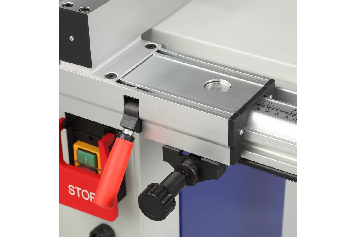 Станок оснащен основным чугунным столом, одним дополнительным столом из листовой стали, подвижным столом из алюминиевого профиля. Основной и подвижный стол имеют по одному стандартному пазу для установки угловых упоров или дополнительных приспособлений. На передней направляющей параллельного упора есть шкала для точной установки. Корпус изделия закрытый, изготовлен из листовой стали, имеет кожух с патрубком для отвода стружки, снабжен специальными держателями для хранения толкателя. Питание станка осуществляется от сети переменного тока напряжением 230 В ±10 и частотой 50 Гц ±5%, с защитным (заземляющим) проводом по ГОСТ 12.1.030-81*. Качество источника электрической энергии по ГОСТ 32144-2013.