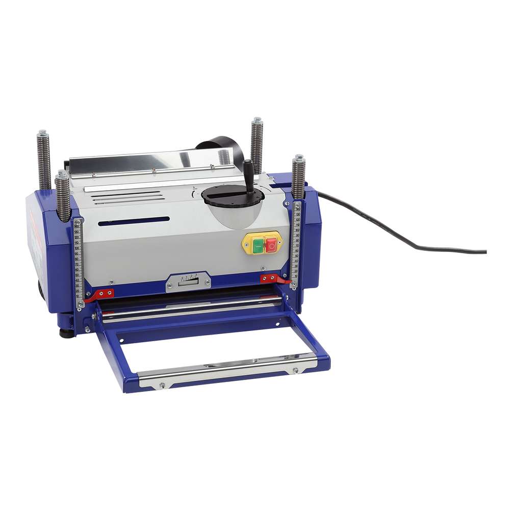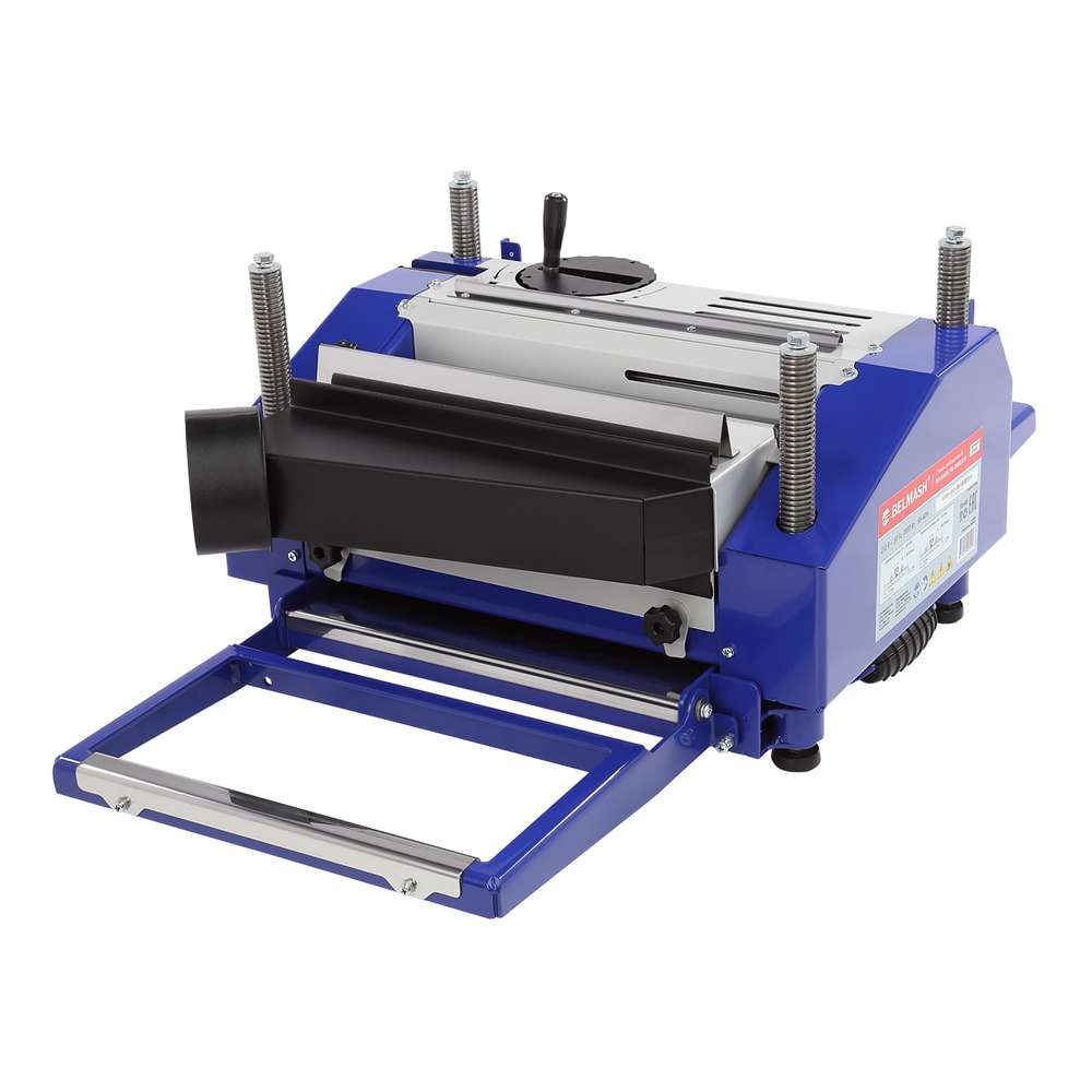 Станок рейсмусовый BELMASH PB-2000/330 предназначен для калибровки заготовки по толщине. В результате обработки получаются ровные заготовки, которые могут применяться в столярном деле, в строительстве, при изготовлении мебели и т.п. Особенность модели BELMASH PB-2000/330 – режущий блок расположен на четырёх винтовых колоннах из нержавеющей стали. Они обеспечивают возможность максимально точной настройки положения строгального вала над столом. Специальный маховик позволяет максимально точно выставлять высоту обработки, вплоть до 0,1мм. Ход режущего блока при полном обороте маховика составляет 2,5мм. Станок оснащен двигателем мощностью 2кВт, выдающим частоту вращения режущего вала 8600об/мин. Также, он имеет встроенное устройство отключения от источника питания при перегреве двигателя и магнитный пускатель, предотвращающий включение станка после восстановления исчезнувшего напряжения. Максимальная глубина рейсмусования за один проход при ширине заготовки 200мм - 3мм, при ширине заготовки от 200 до 330мм – 1.5мм. Автоматическая подача заготовки в зону резания осуществляется со скоростью 6м/мин.