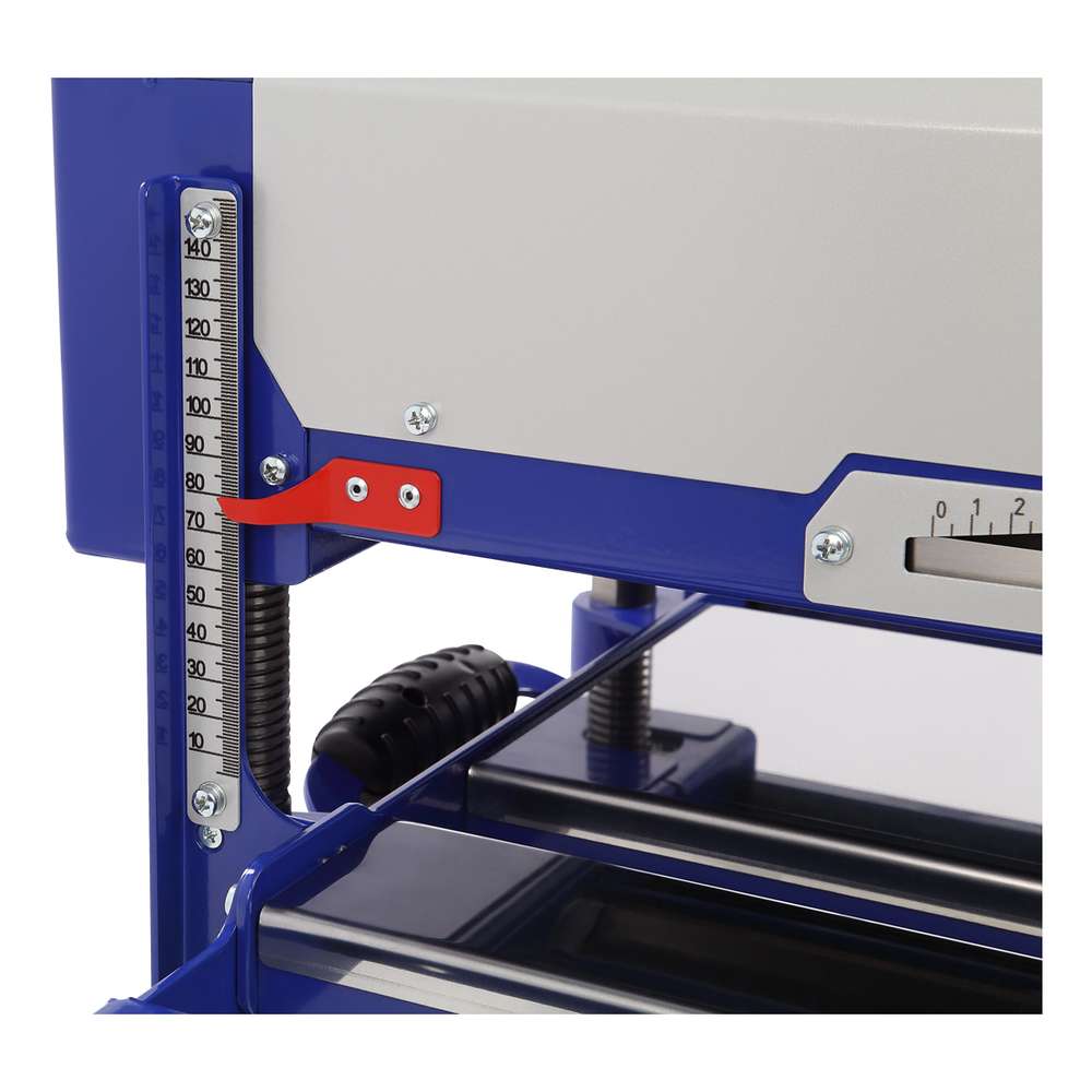 Точная настройка глубины обработки - на маховике и кожухе имеются указатели, которые позволяют выполнять точную настройку высоты рейсмусования, вплоть до 0,1 мм