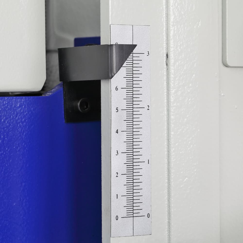 Шлифовальный барабанный станок BELMASH DS560-WB предназначен для обработки деревянных заготовок путем шлифования абразивным материалом. Основной рабочий орган – шлифовальный барабан длиной 565 мм и диаметром 132 мм, на который намотана шлифовальная лента. Данная модель станка оснащена мощным асинхронным двигателем (1500 Вт) с частотным преобразователем, что позволяет осуществлять плавную регулировку частоты вращения шлифовального барабана в диапазоне от 0 до 1800 оборотов в минуту. Подача автоматическая. Заготовка размещается на ленте транспортера из специального нескользящего материала. В движение лента приводится отдельным коллекторным двигателем мощностью 80 Вт. Скорость транспортера можно плавно менять с помощью ручки регулировки от 0 до 3,5 метров в минуту. Максимальная ширина обрабатываемой заготовки составляет 555 мм. Положение шлифовального блока легко настраивается вращением маховика. Максимальная высота заготовки – 80 мм, минимальная – 5 мм. Кроме основного стола (основания транспортера), имеются две дополнительные секции для удобного позиционирования заготовки. Шлифовальный барабан имеет консольное расположение. При необходимости обработки более широких заготовок можно снять левую стойку и в два прохода обрабатывать детали шириной до 1110 мм. На основной панели управления расположены кнопки включения и выключения станка, регулятор частоты вращения двигателя шлифовального барабана и дисплей, показывающий текущее значение оборотов. Под основным блоком расположена панель с ручкой настройки скорости транспортера. На кожухе шлифовального блока имеется патрубок (диаметр 100 мм) для подключения системы пылеудаления.