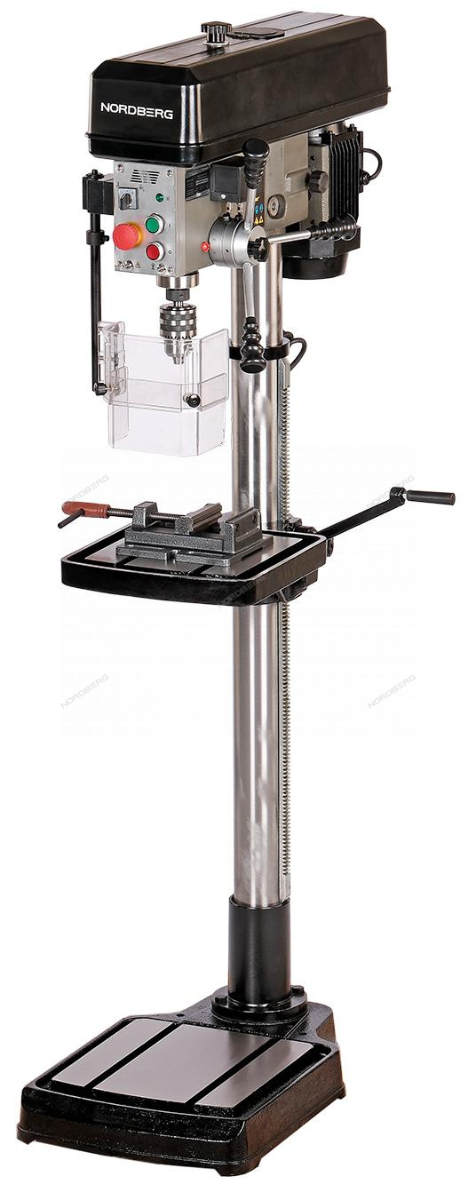 Станок электрический сверлильный напольный (750 Вт, 25 мм, 5 скоростей, нарезание резьбы, тиски) NORDBERG ND25116P предназначен для сверления отверстий и нарезания резьбы в древесине, металле, пластиках и других материалах.