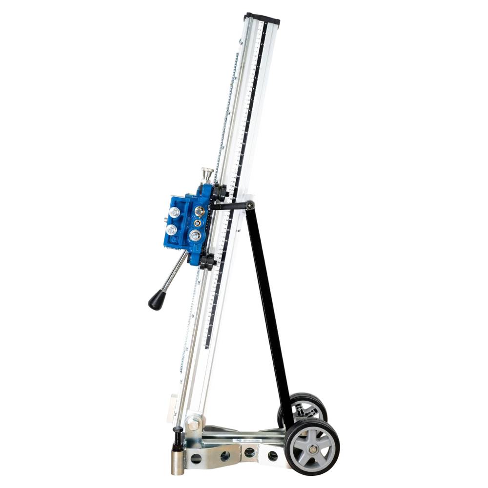 Штатив оснащён быстросъёмной системой крепления мотора, значительно упрощающей установку и снятие двигателя. Устойчивая и эргономичная опорная плита с колёсами обеспечивает лёгкую транспортировку по стройплощадке. Более того, она имеет возможность вакуумного крепления (в комплекте), что позволяет надёжно фиксировать штатив без использования анкеров.