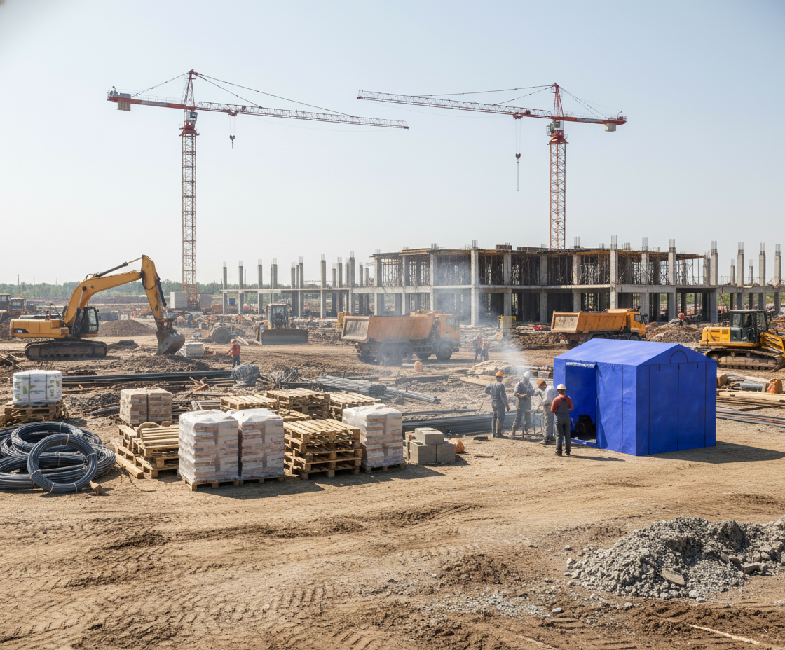 Укрытие для проведения строительных работ.