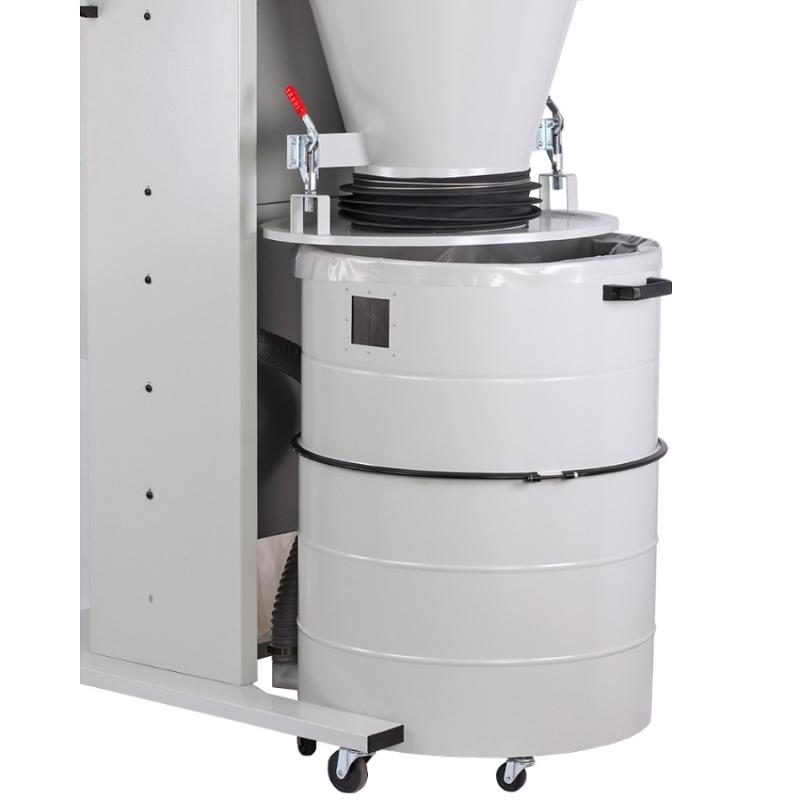 Вытяжная установка с циклоном BELMASH CTDC-1.7 – одна из самых мощных в линейке вытяжных установок BELMASH. Предназначена для удаления древесных опилок, стружки и пыли, образующихся в процессе деревообработки. Мощность асинхронного двигателя – 3000 Вт. Подключение к электросети 400 В. Установка имеет две ступени очистки. Сначала воздух с отходами резания подается в циклон, где происходит первичная очистка, а затем поступает в фильтр-картридж, на вторую ступень – тонкую очистку. Сбор отходов у такой системы раздельный: крупные – в мешке бункера, мелкие – в пылесборнике под фильтр-картриджем.