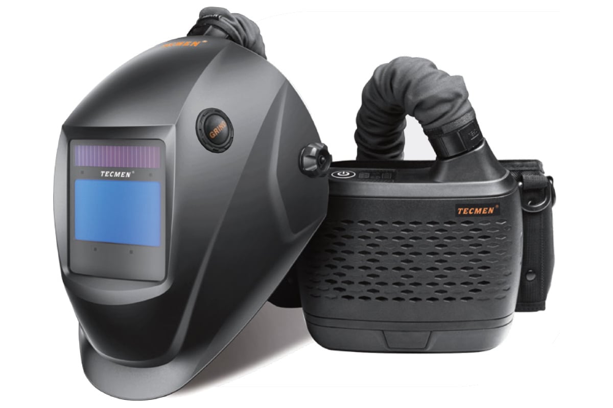 Маска сварщика TECMEN Хамелеон с подачей воздуха ADF 815S PAPR 100537769 защищает лицо, органы зрения и дыхания от негативных воздействий во время сварки.