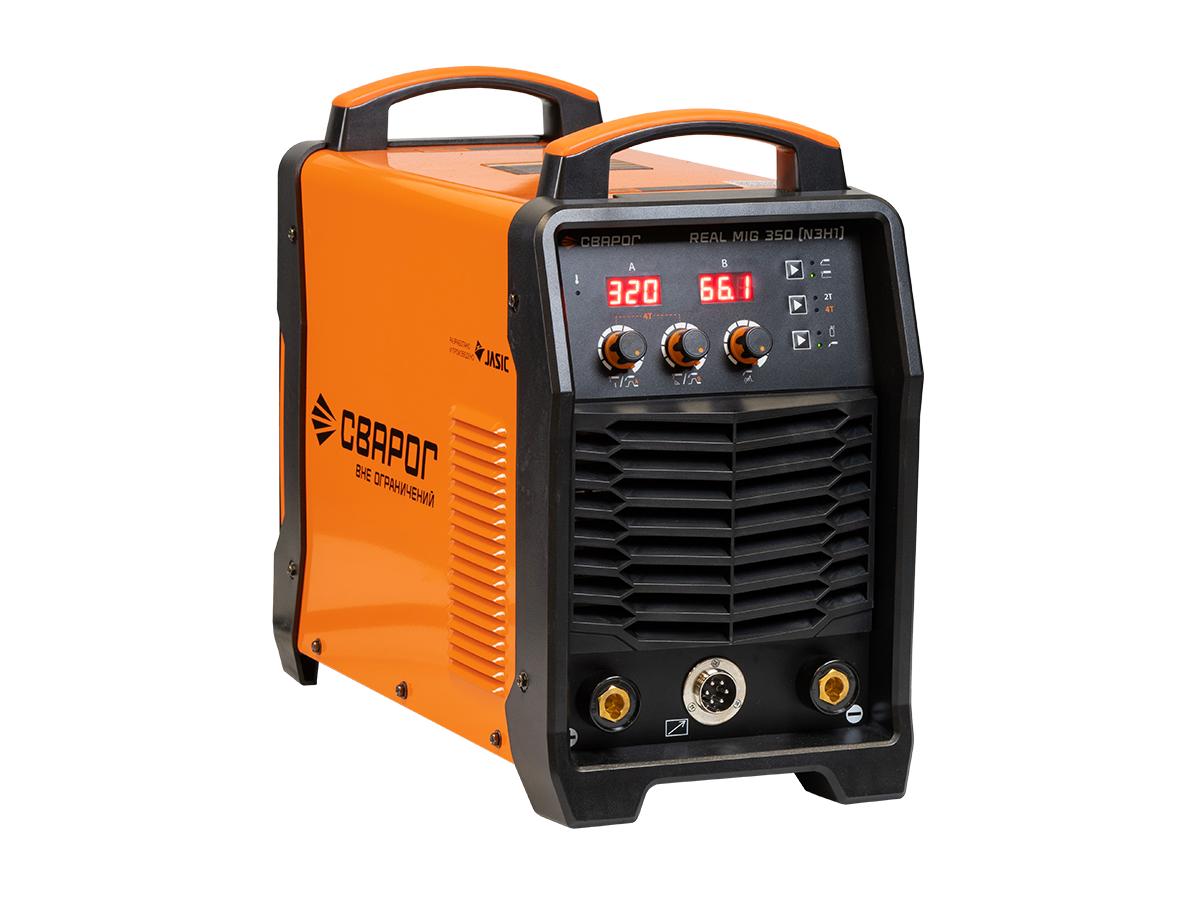 REAL MIG 350 (N3H1) предназначен для полуавтоматической сварки в среде защитных газов (MIG/MAG), сварки порошковой проволокой (FCAW), ручной дуговой сварки покрытым электродом (ММА), а также аргонодуговой сварки неплавящимся электродом (TIG DC).