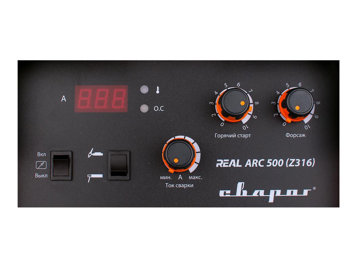 REAL ARC 500 (Z316)— инверторный сварочный аппарат для ручной дуговой сварки покрытым электродом (MMA) на прямой и обратной полярности и аргонодуговой сварки неплавящимся электродом (TIG).