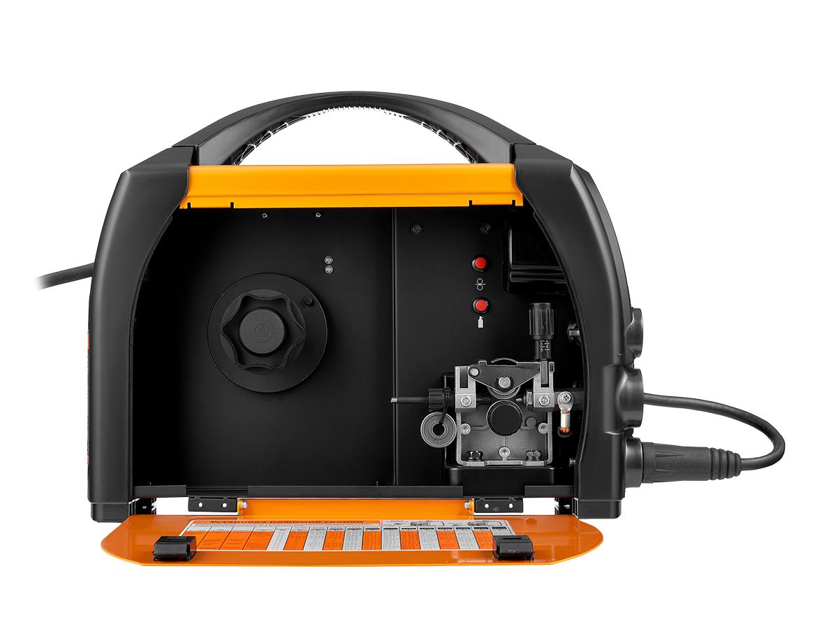 Мощный электромотор и двухроликовый механизм подачи проволоки обеспечивает плавный и безрывковый процесс сварки на всех этапах