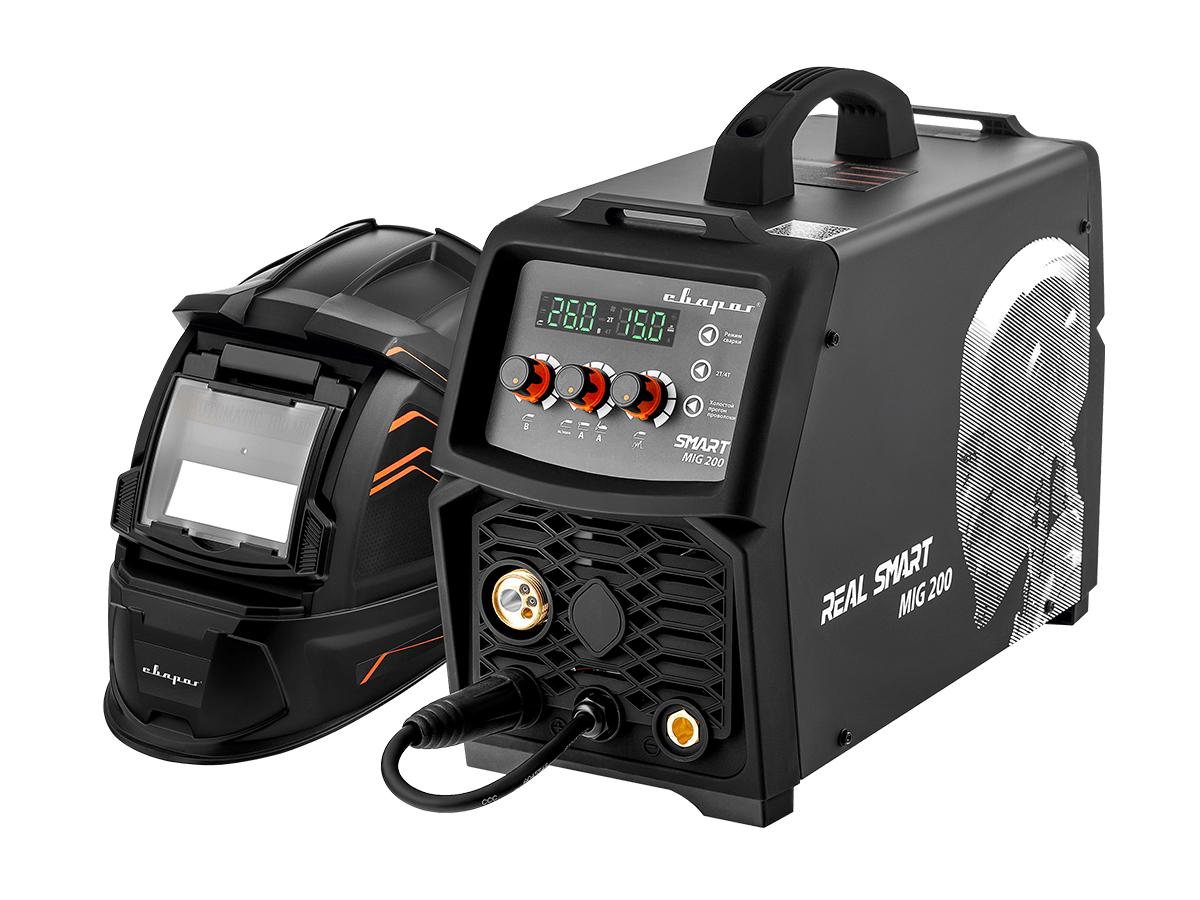 REAL SMART MIG 200 BLACK — универсальный, многофункциональный аппарат, предназначенный для полуавтоматической сварки сплошными и порошковыми проволоками (MIG/MAG), для ручной дуговой сварки покрытыми электродами (MMA), а также аргонодуговой сварки неплавящимся электродом (TIG). Все режимы являются полноценными и каждый содержит большой набор вспомогательных функций.