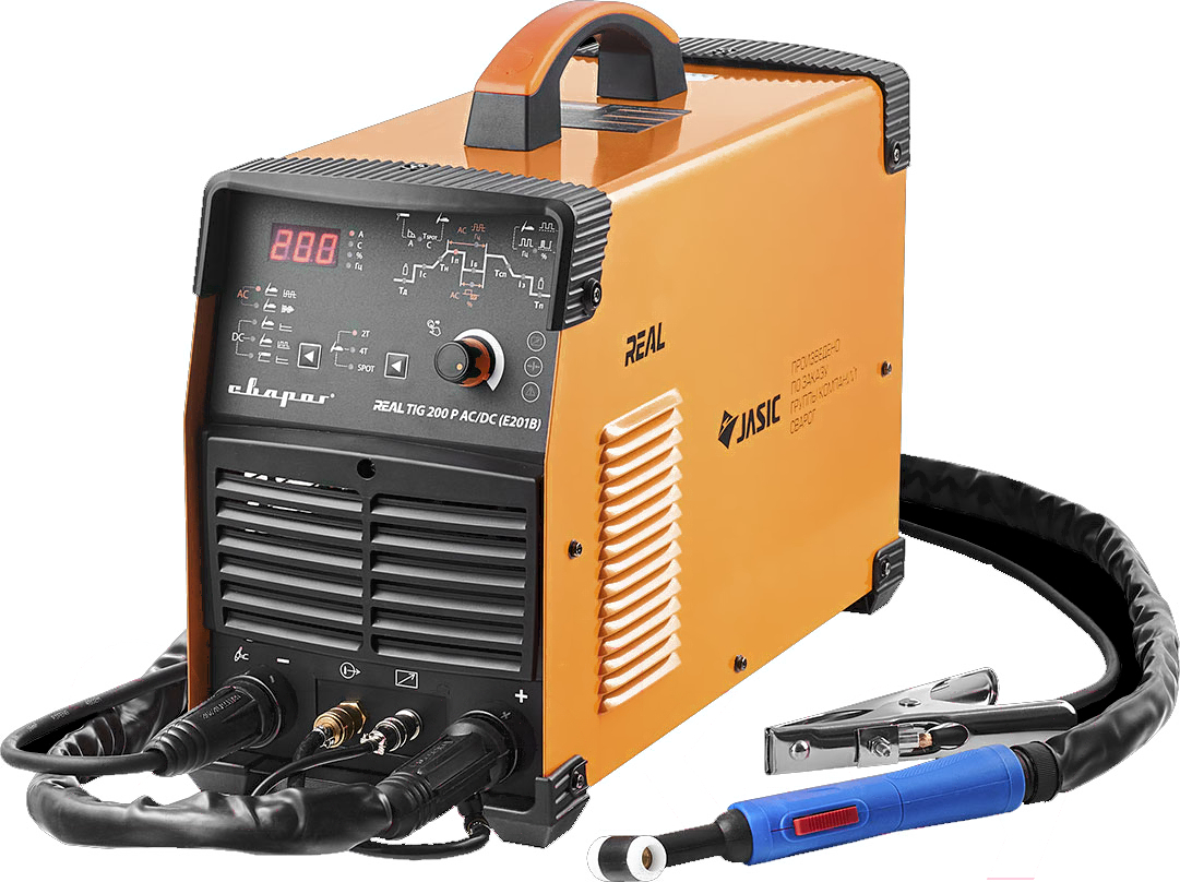 REAL TIG 200 P AC/DC (E201B) — инверторный сварочный аппарат с режимом аргонодуговой сварки (TIG) на постоянном (DC) и переменном токе (AC), ручной дуговой сварки (MMA) на постоянном (DC) токе.