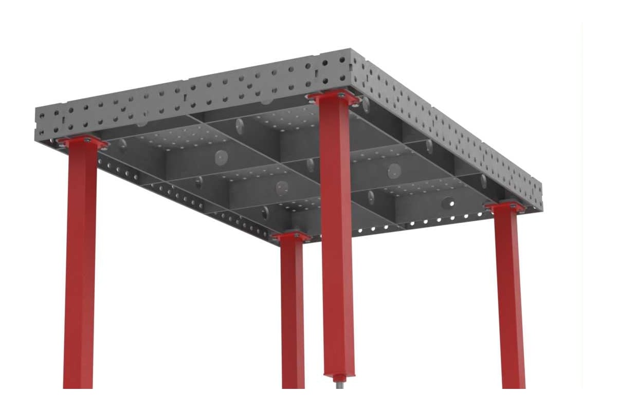 Удобство эксплуатации: столешница оснащена координатной сеткой 50х50 мм и линейкой в длину стола для точного фиксирования деталей, плоскостность стола до 1 мм на пог. м., ножки стола оснащены возможностью вертикальной регулировки с ходом в 50 мм.