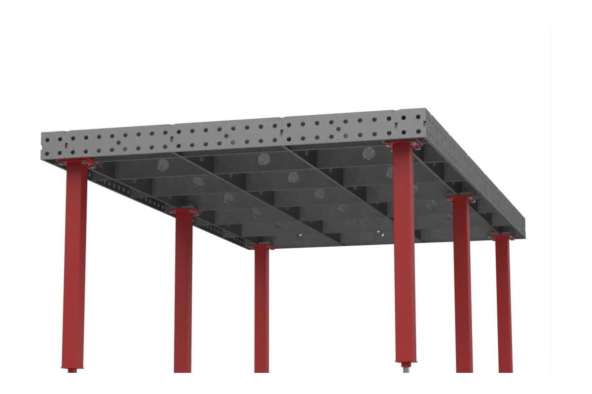 Удобство эксплуатации: столешница оснащена координатной сеткой 50х50 мм и линейкой в длину стола для точного фиксирования деталей, плоскостность стола до 1 мм на пог. м., ножки стола оснащены возможностью вертикальной регулировки с ходом в 50 мм.