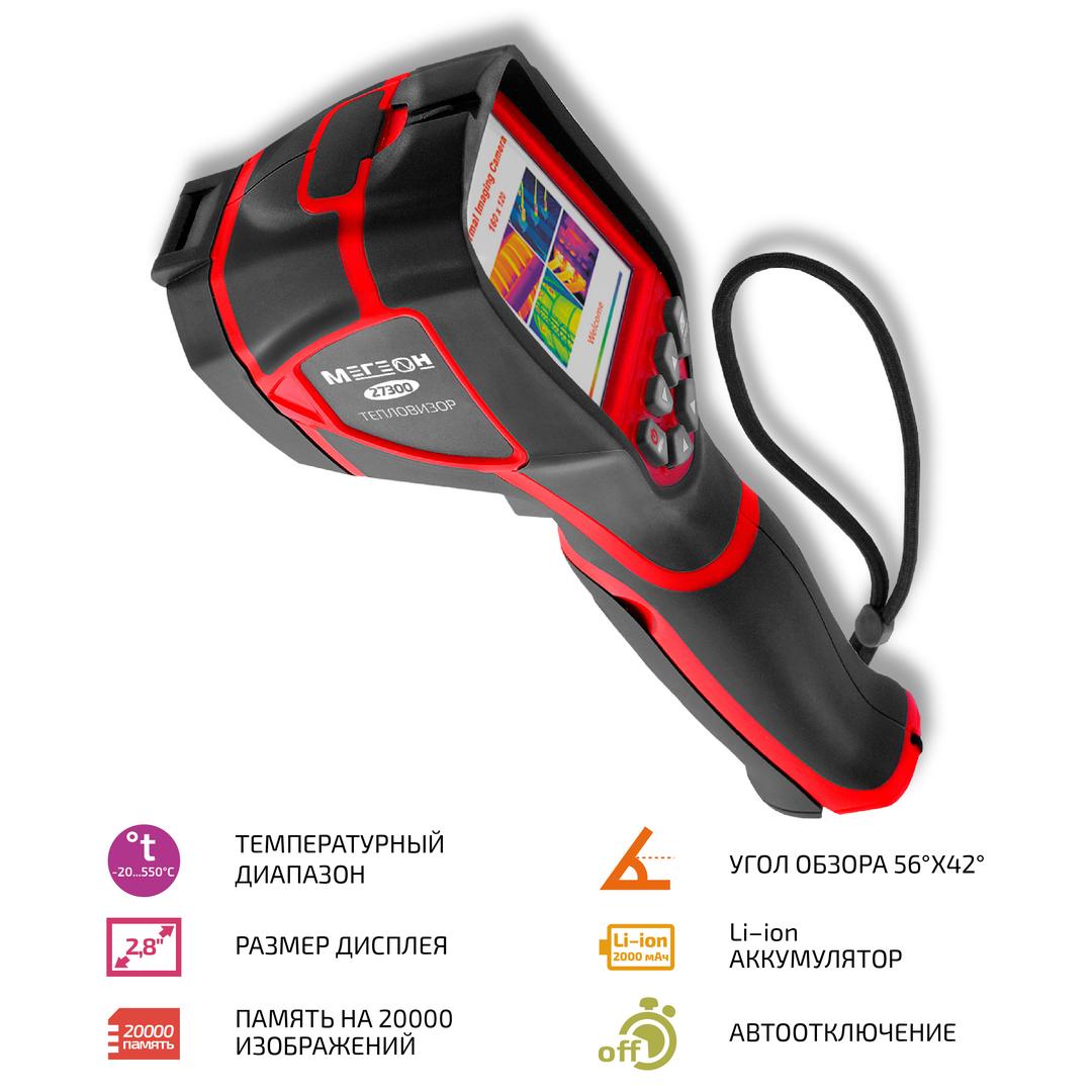 МЕГЕОН 27300 - новинка в модельном ряду тепловизоров. Прибор получил камеру высокого разрешения и качественный тепловизионный датчик, благодаря чему он сочетает в себе функции измерителя температуры различных объектов, а также может формировать термические образы воздушных масс в зависимости от источников температурного излучения. Существенным преимуществом изделия является возможность отображения теплового изображения помещения на его же фоне в видимом свете, при этом глубину этого фона можно настроить. Это упрощает эксплуатацию и значительно ускоряет процесс работы без лишних затрат времени. Память позволяет сохранить до двадцати тысяч снимков, которые можно перенести на персональный компьютер для дальнейшей обработки. Корпус изготовлен из ABS-пластика с резиновыми вставками противоскольжения. В рукоятке предусмотрено монтажное отверстие для установки на штатив. Питание осуществляется многозаряжаемой аккумуляторной батареей 3,7 В 2000 мАч. Устройство по достоинству оценят профессионалы и любители.