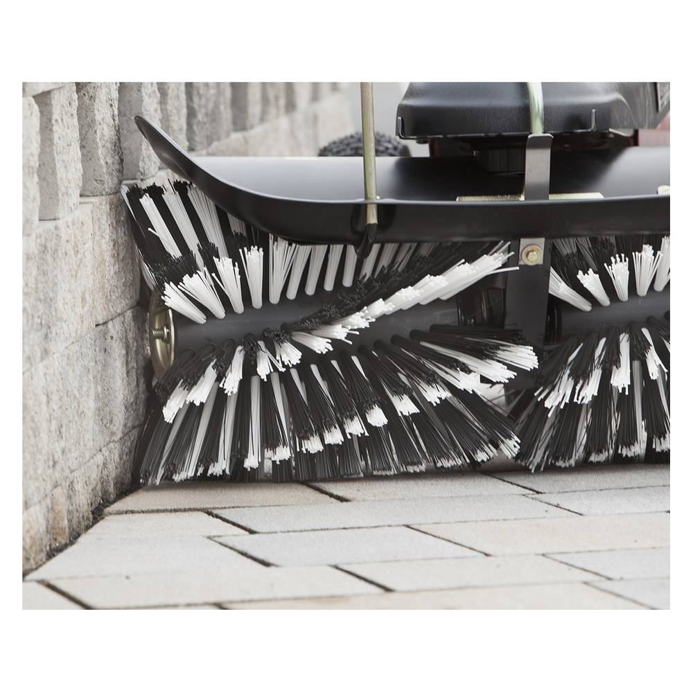 Универсальная щетка - справляется практически с любым видом загрязнений. Жесткие белые щетины предназначены для въевшейся грязи, мха, снега. Мягкие черные – для уборки пыли и листвы. Щетка изготовлена из морозостойкого полипропилена, обеспечивающего ресурс не менее 1600 моточасов