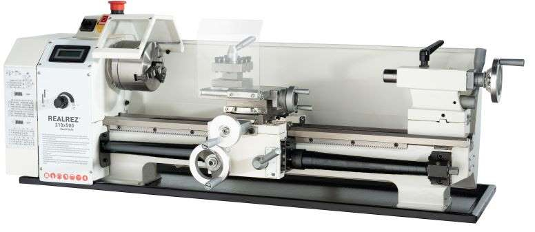 Токарно-винторезный станок REALREZ 210x500 220V (без стола) – предназначен для обработки резанием заготовок из конструкционных материалов (сталей, чугунов, сплавов цветных металлов), а также для нарезания метрических и дюймовых резьб.