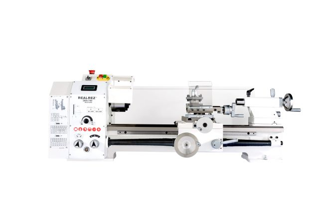 Токарно-винторезный станок REALREZ 280x700 — это незаменимый и надежный станок для небольших металлообрабатывающих предприятий. Станок поставляется в комплекте со столом, ножки которого выполнены в виде тумб, для удобного расположения инструмента. На станке можно нарезать как метрическую, так и дюймовую резьбу благодаря шпинделям с прочными металлокерамическими подшипниками. К преимуществам станка REALREZ 280x700 относятся: Широкий спектр технических задач - растачивание, сверление и снятие фасок с цилиндрических и конических поверхностей металлических заготовок Широкий диапазон регулируемых скоростей вращения и продольной подачи значительно расширяет возможности использования разнообразных режущих инструментов Станок оснащен электронным бесступенчатым управлением скоростью вращения шпинделя Скорость вращения шпинделя отображается на цифровом дисплее на корпусе станка Продольная, поперечная и верхняя каретки суппорта Автоматическая продольная подача Металлокерамические подшипники ходового винта Коробка передач для регулировки шага и сменные шестерни обеспечивают большой диапазон нарезаемых резьб Возможность поперечного смещения задней бабки для точения длинных конусов Поворот верхней каретки суппорта для точения коротких конусов Чугунная станина имеет ширину 135 мм, самую широкую в своем классе, что значительно увеличивает жесткость станка и повышает точность обработки Направляющие станины станка шлифуются и закаляются для значительного повышения точности и надежности токарного станка Кнопка аварийной остановки и защитный экран зоны резания предотвращают несчастные случаи, тем самым обеспечивается безопасность оператора Кнопки на креплении поперечной подачи предотвращают непредвиденный поворот маховика, сводя к минимуму риск изменения размеров заготовки во время обработки Оснащен быстро-фиксирующимся зажимом для ослабления задней бабки, установки глубины сверления и для зажима длинных заготовок. Перемещение пиноли задней бабки составляет 65 мм Токарный станок имеет диаметр шпинделя 29 мм и диаметр станины 280 мм Телескопические защитные кожухи ходового винта эффективно защищают его от износа в соответствии с действующими требованиями охраны здоровья и безопасности, стандартами DIN и CE Важным преимуществом данного станка является наличие износостойких металлических шестерен с высоким сроком службы и наличие клинового ремня, который позволяет избежать повреждения двигателя при перегрузке шпинделя В комплекте со станком поставляются: 3-х кулачковый патрон 125 мм, с комплектом обратных кулачков; 4-х позиционный резцедержатель; Центр упорный; Защитное ограждение патрона; Поддон для стружки; Стол; Инструментальный ящик с инструментом; Упаковка.