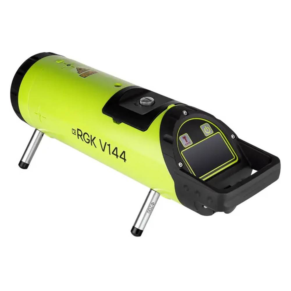 Трубный лазер RGK V144 излучает четкую зеленую лазерную точку, видимую на расстоянии до 600 м при использовании приемника. Доступны режимы автоматического центрирования, сканирования влево/вправо (±4°), а также функция автотрекинга — лазер самостоятельно находит центр приемника и фиксирует луч.